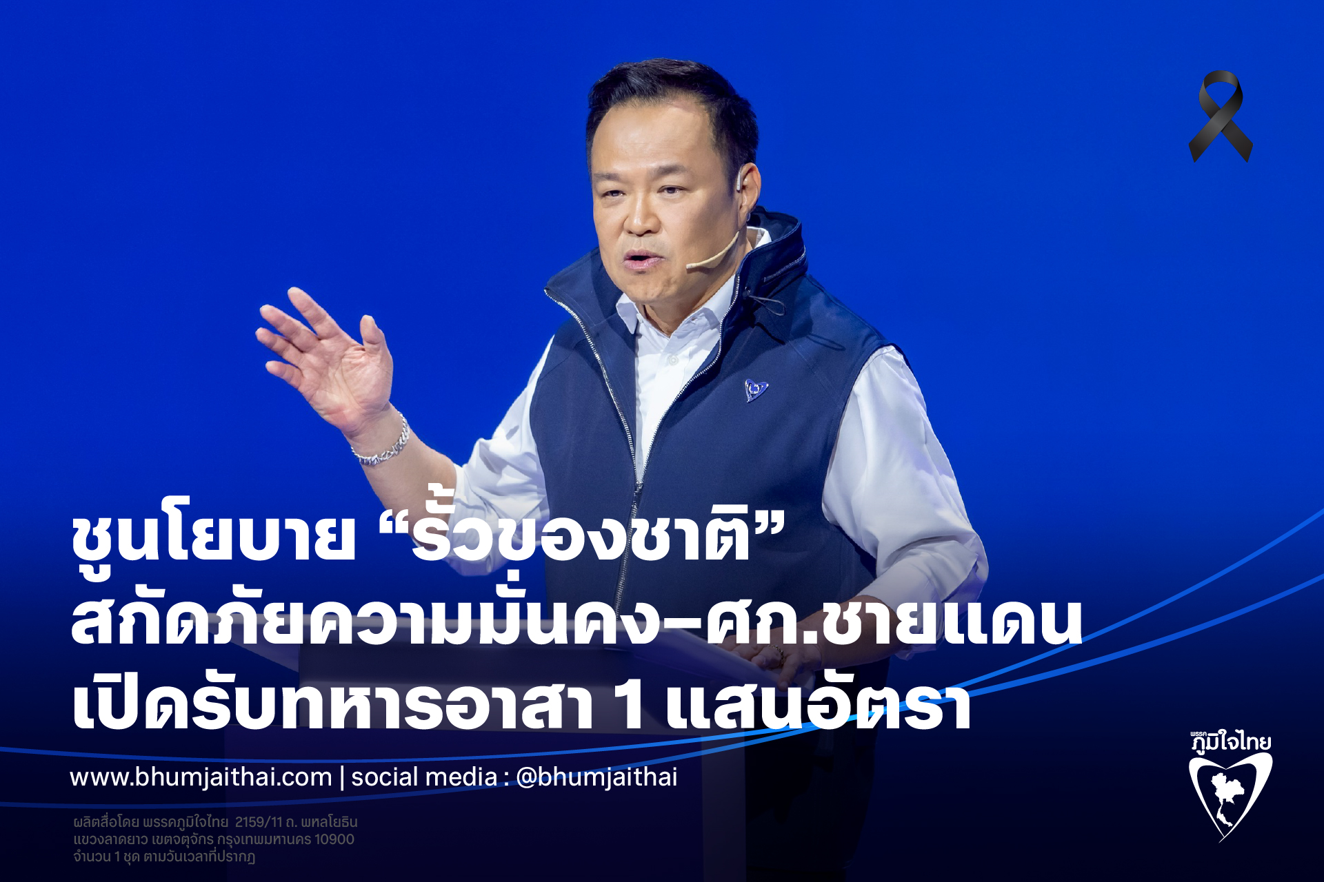 “อนุทิน” ชูนโยบาย “รั้วของชาติ” สกัดภัยความมั่นคง–เศรษฐกิจชายแดน เปิดรับทหารอาสา 1 แสนอัตรา เงินเดือน 1.2 หมื่นบาท