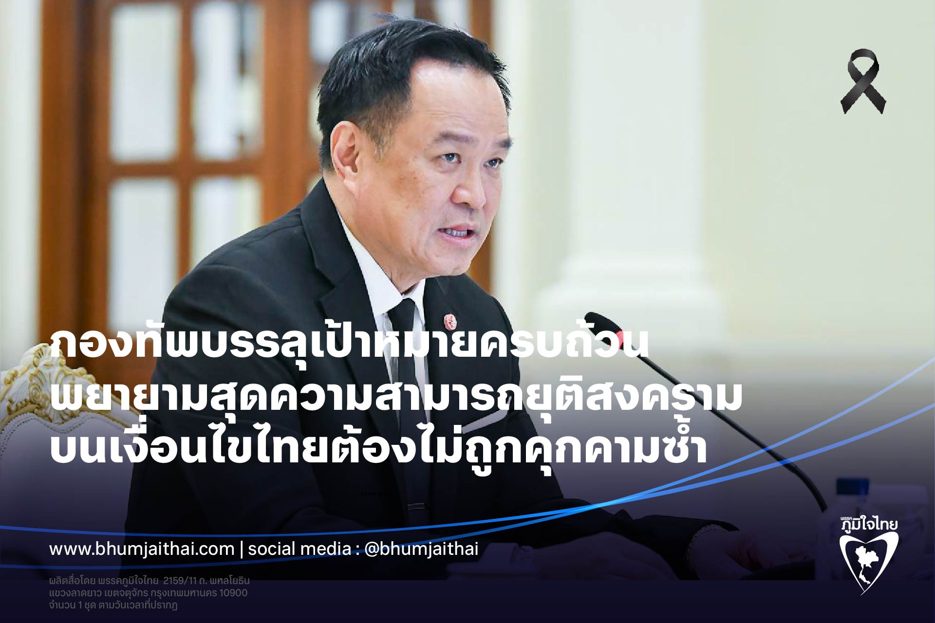 “อนุทิน” ย้ำกองทัพบรรลุเป้าหมายครบถ้วน พยายามสุดความสามารถยุติสงคราม บนเงื่อนไขไทยต้องไม่ถูกคุกคามซ้ำ