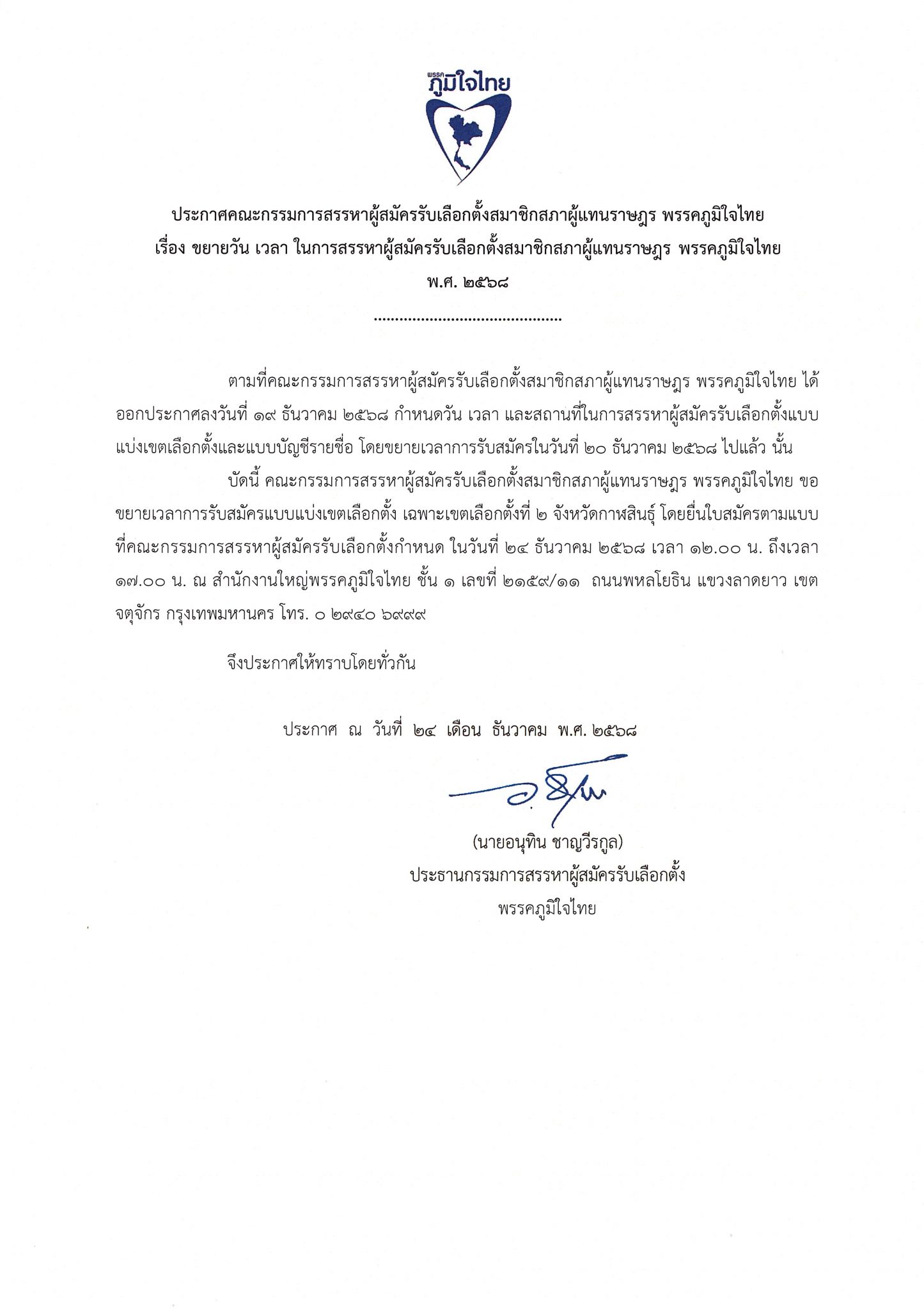 24 ธันวาคม 2568 เวลา 10:00ประกาศคณะกรรมการสรรหาผู้สมัครรับเลือกตั้งสมาชิกสภาผู้แทนราษฎร พรรคภูมิใจไทย เรื่อง ขยายวัน เวลา ในการสรรหาผู้สมัครรับเลือกตั้งสมาชิกสภาผู้แทนราษฎร พรรคภูมิใจไทย พ.ศ. ๒๕๖๘แชร์บทความนี้: