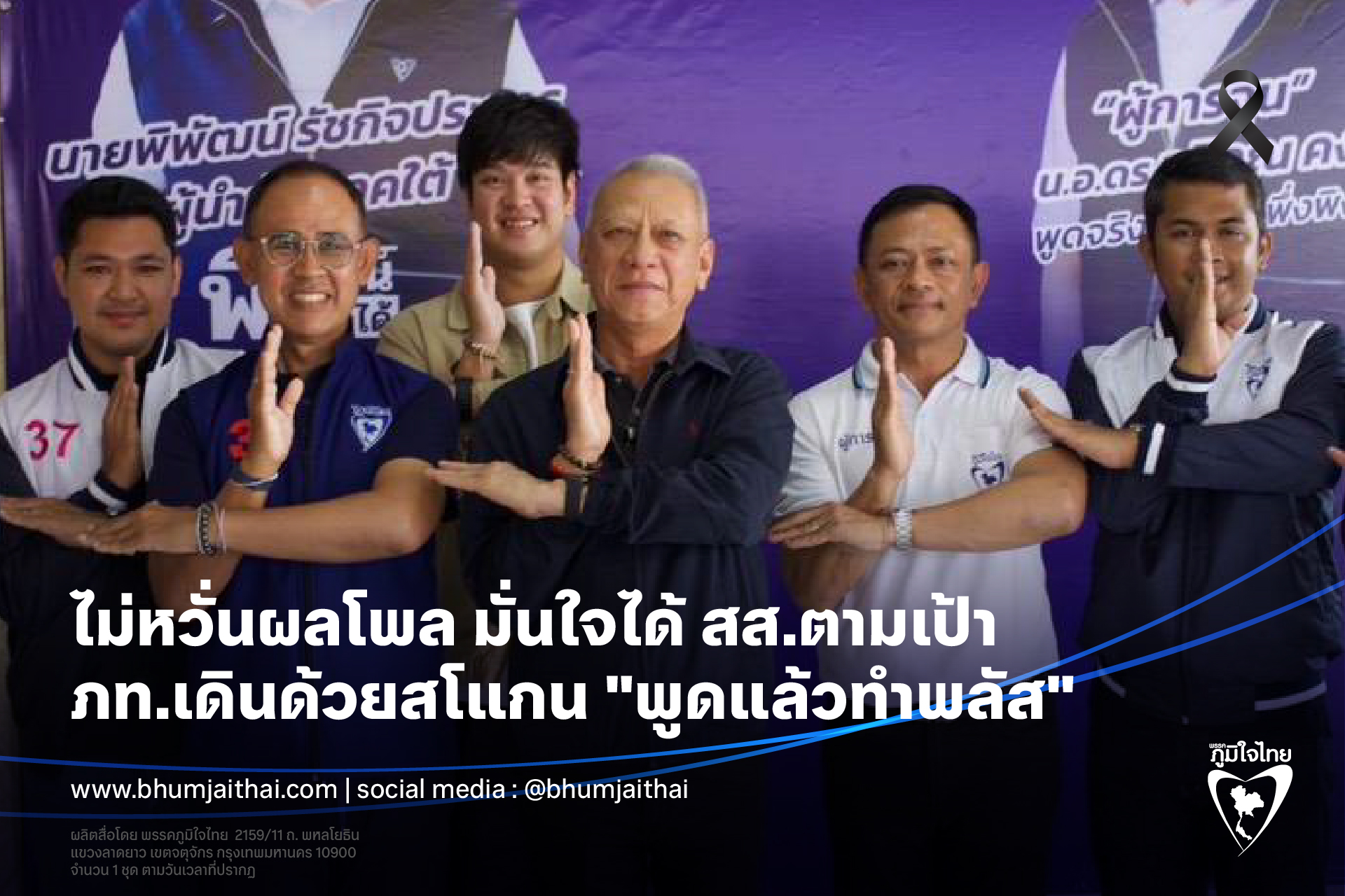 ไม่หวั่นผลโพล มั่นใจได้ สส.ตามเป้า ภท.เดินด้วยสโแกน "พูดแล้วทำพลัส"