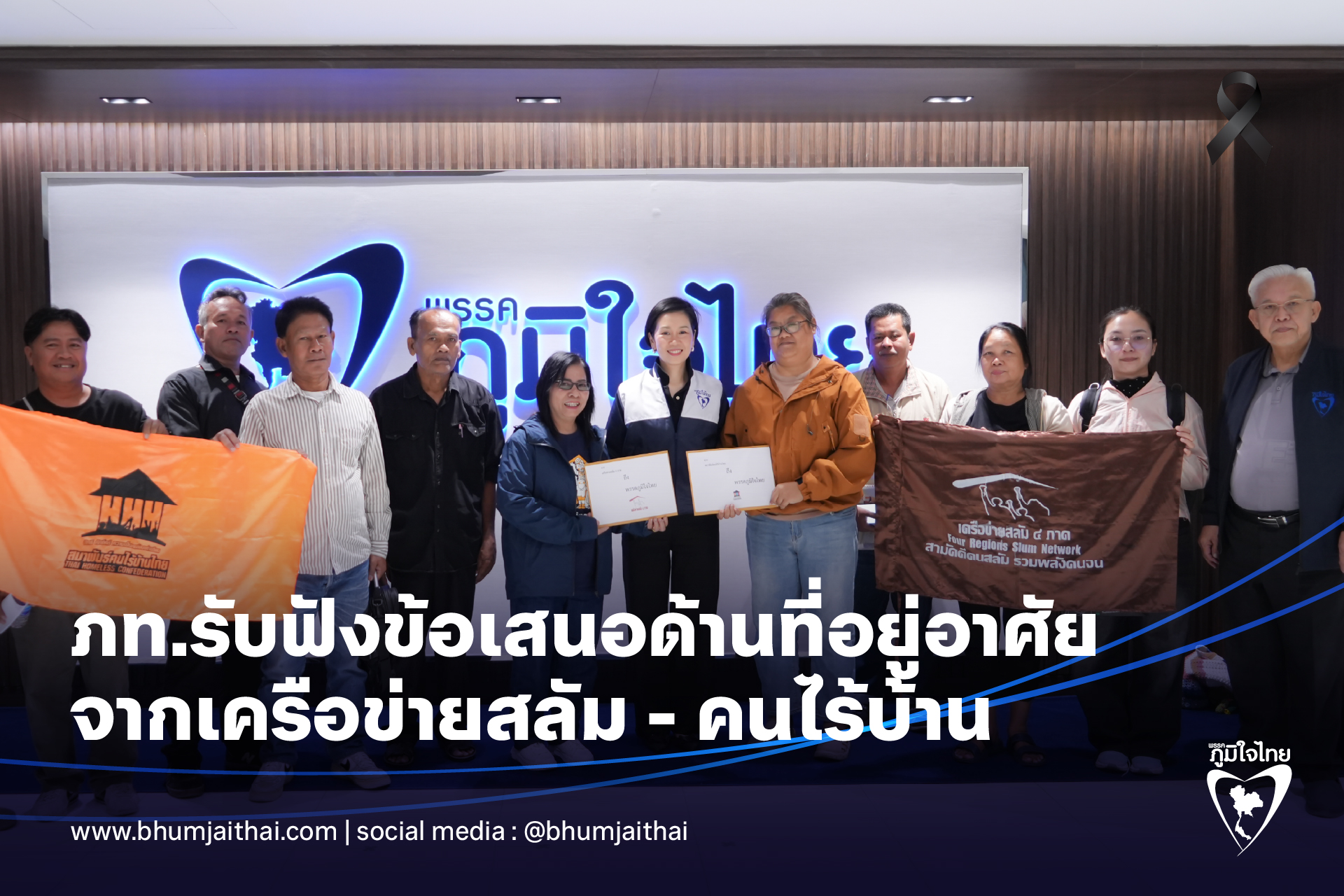 ภูมิใจไทย รับฟังข้อเสนอด้านที่อยู่อาศัยจากเครือข่ายสลัม-คนไร้บ้าน พรรคพร้อมทำงานร่วมกับภาคประชาชน