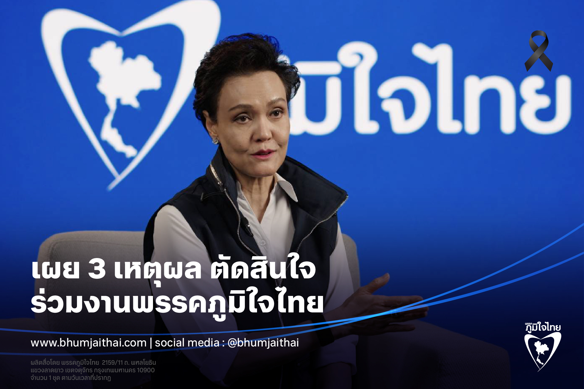 เผย 3 เหตุผล ตัดสินใจร่วมงานพรรคภูมิใจไทย
