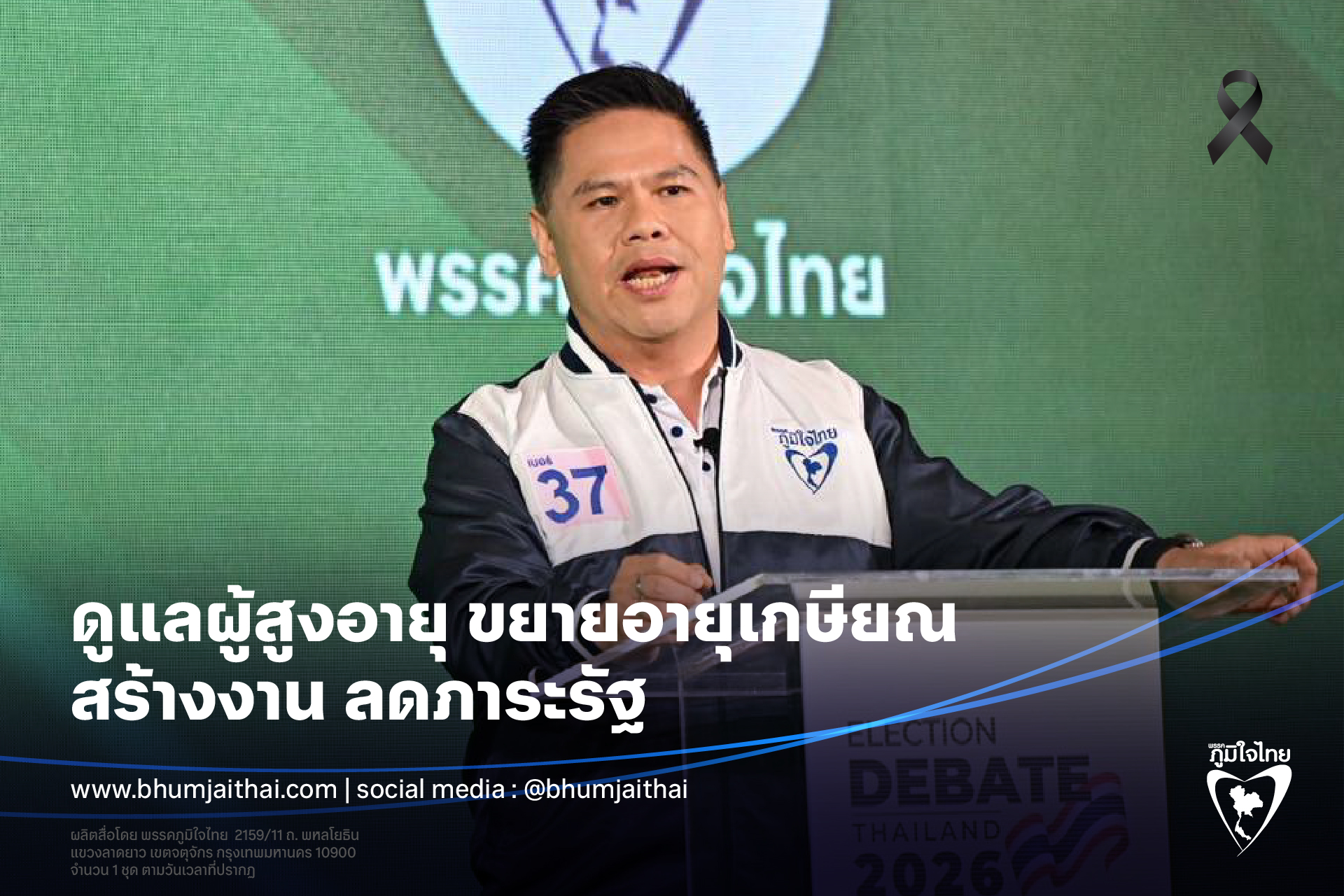 พรรคภูมิใจไทย นำเสนอนโยบาย ด้านสังคม บนเวที กกต. ชู ดูแลผู้สูงอายุ ขยายอายุเกษียณ สร้างงาน ลดภาระรัฐ ย้ำ คนละครึ่งพลัสไม่ใช่ประชานิยม ขอประชาชนให้โอกาสทำงานต่อ