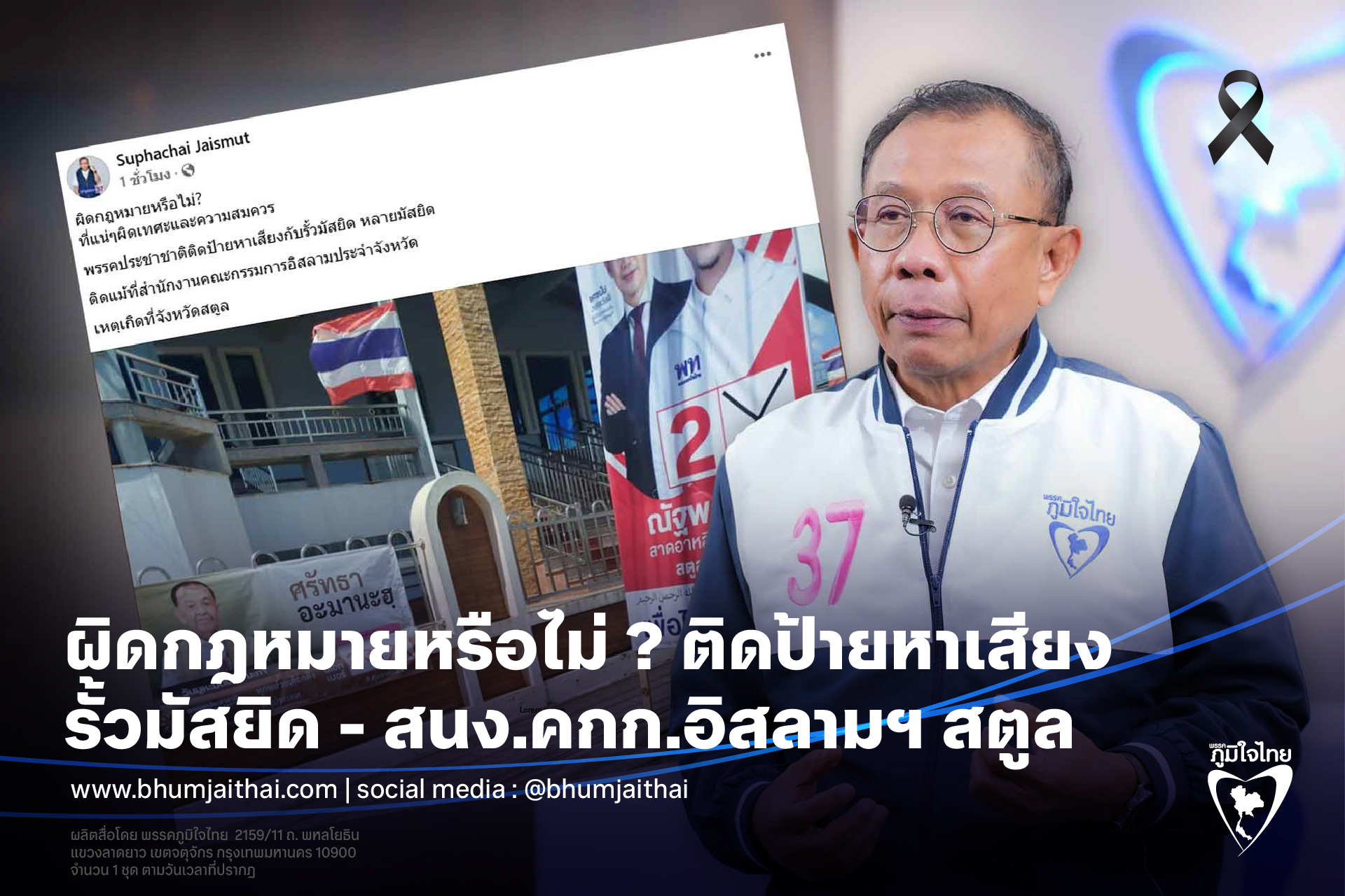 สมควรหรือไม่ ! “ศุภชัย” เตือน พรรคประชาชาติ ติดป้ายหาเสียงรั้วมัสยิด-สนง.คกก.อิสลามฯ สตูล ไม่เหมาะสม พร้อมถามผิดกฎหมายเลือกตั้งหรือไม่