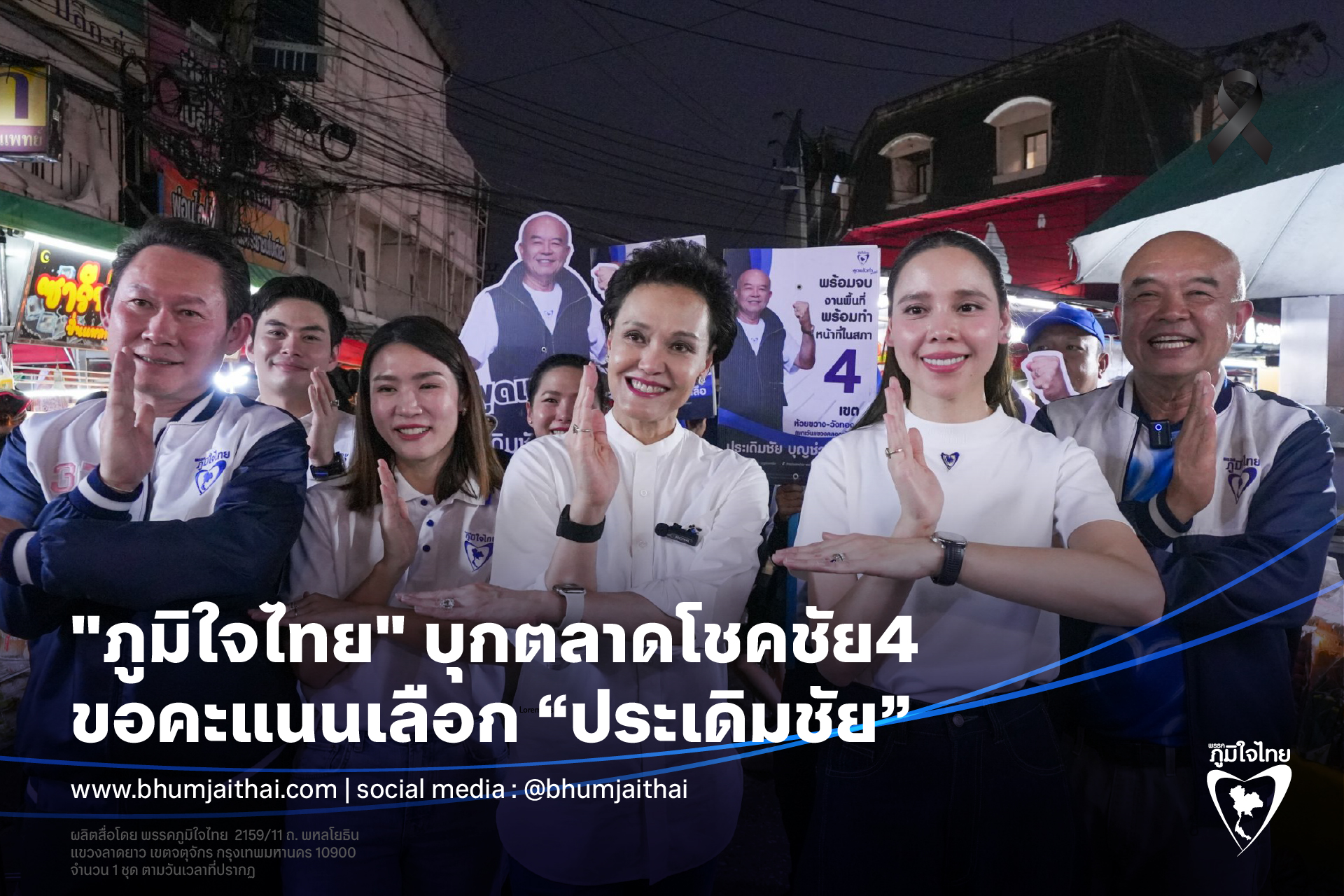 วันที่ 15 ม.ค. 2569 เมื่อเวลา 18.00 น. นางศุภจี สุธรรมพันธุ์ ผู้ช่วยหาเสียงพรรคภูมิใจไทย นำทีมแกนนำพรรคภูมิใจไทย นางสาวศุภมาส อิศรภักดี นางสาวซาบีดา ไทยเศรษฐ์ นายเกรียงยศ สุดลาภา ผู้สมัครสส.ระบบบัญชีรายชื่อ ลงพื้นที่ตลาดโชคชัย4 ช่วยนายประเดิมชัย บุญช่วยเหลือ ผู้สมัคร สส. กทม. เขตห้วยขวาง-วังทองหลาง หาเสียงเลือกตั้ง