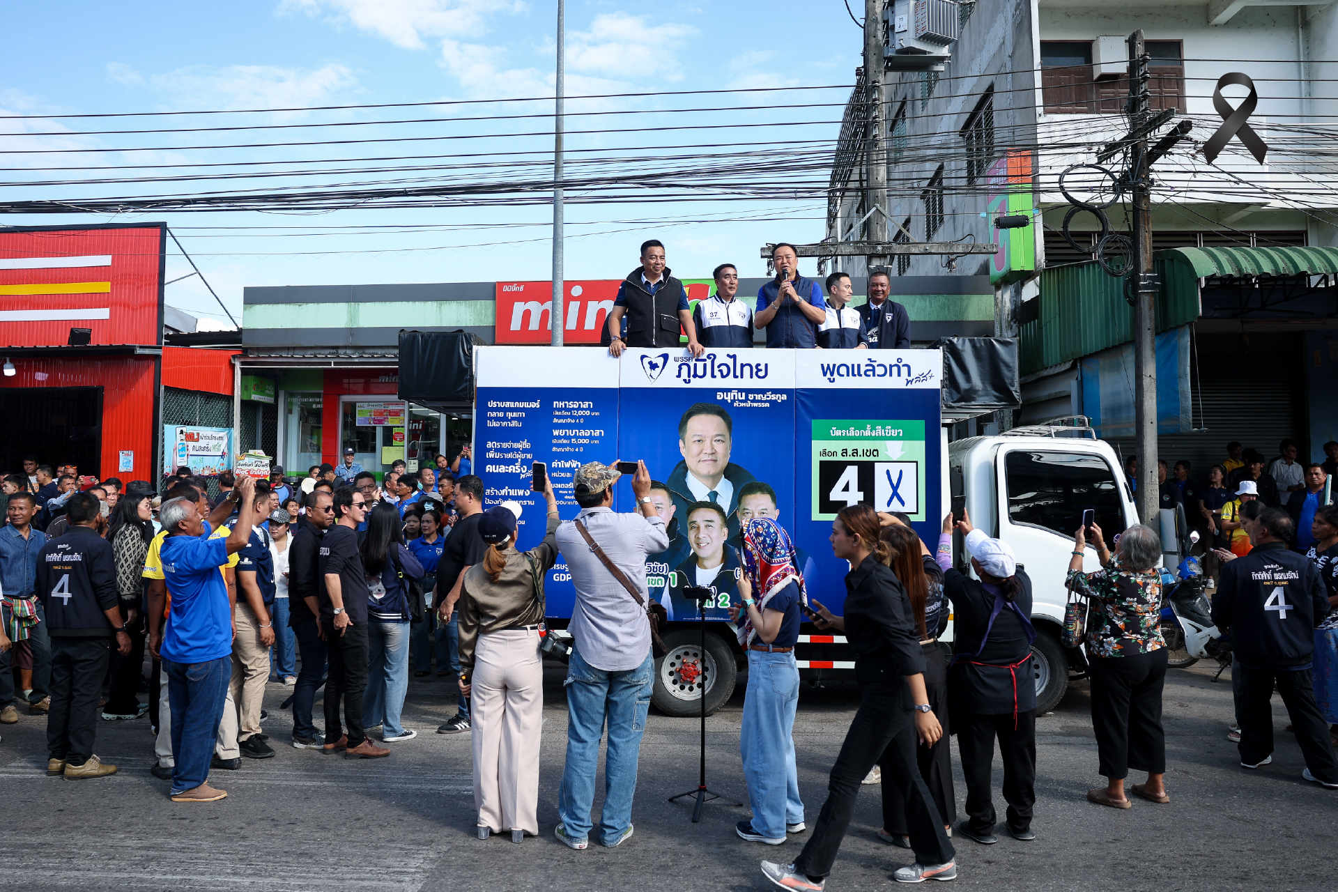 จากนั้น นายอนุทินขึ้นรถปราศรัยขอบคุณชาวท่าแซะ ระบุว่าได้รับการต้อนรับอย่างอบอุ่น พร้อมขอให้ประชาชนออกไปใช้สิทธิเลือกตั้งในวันที่ 8 กุมภาพันธ์นี้ และขอโอกาสให้เลือกผู้สมัครทั้ง 3 เขตของพรรค โดยย้ำว่า “เบอร์ 4 อย่างเดียวไม่พอ ขอฝากเบอร์ 37 ด้วย” เพื่อให้พรรคสามารถผลักดันนโยบายได้อย่างเต็มที่