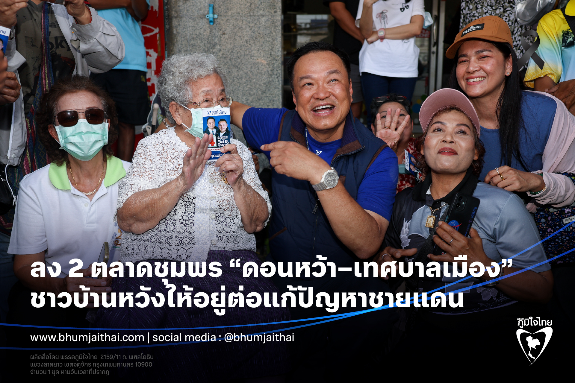 จากนั้น นายอนุทินเดินทางไปยังตลาดสดเทศบาลเมืองชุมพร ท่ามกลางกองเชียร์ที่ส่งเสียงสนับสนุน “เลือกเบอร์ 37” ตลอดเส้นทาง มีประชาชนและแฟนคลับเข้ามาขอถ่ายภาพอย่างต่อเนื่อง รวมถึงมีผู้มอบเหรียญหลวงพ่อคล้าย วาจาสิทธิ์ เพื่อความเป็นสิริมงคล พร้อมอวยพรให้โชคดี นอกจากนี้ ยังมีแม่ค้าขายเค้กส้มเชิญให้นายอนุทินลองชิม บรรยากาศเป็นไปอย่างคึกคัก โดยชาวบ้านต่างขอให้นายอนุทินชนะการเลือกตั้ง และชื่นชมความสามารถในการจัดการปัญหาความสัมพันธ์ไทย–กัมพูชา