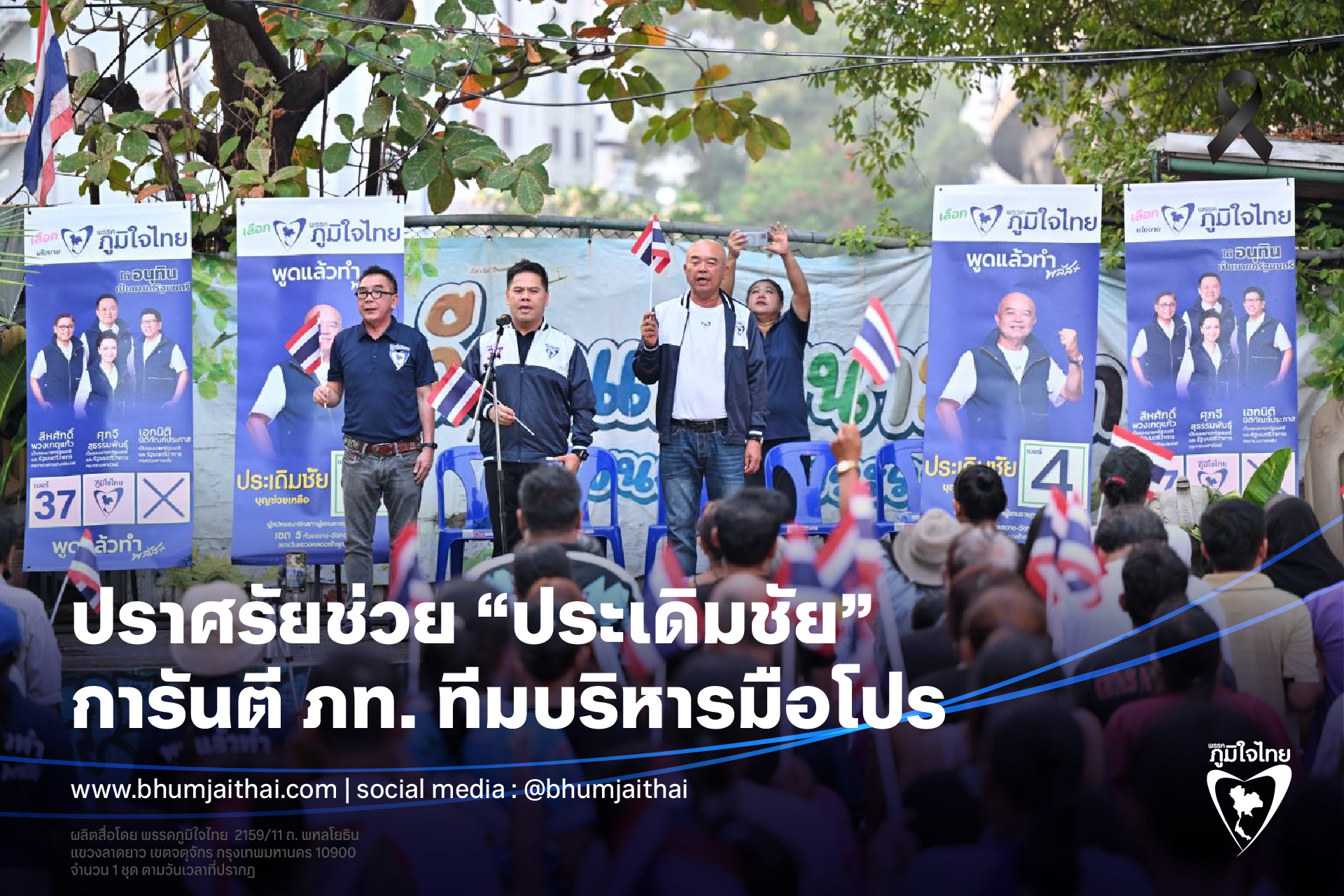 เมื่อวันที่ 17 มกราคม 2569 ที่ชุมชนเพชรพระราม นายวราวุธ ศิลปอาชา ผู้สมัครสส.บัญชีรายชื่อ พรรคภูมิใจไทย อดีตรัฐมนตรีว่าการกระทรวงการพัฒนาสังคมและความมั่นคงของมนุษย์ ช่วยนายประเดิมชัย บุญช่วยเหลือ ผู้สมัครสส. เขต 5 ห้วยขวาง วังทองหลาง (ยกเว้นแขวงคลองเจ้าคุณสิงห์) เบอร์ 4 หาเสียง ด้วยการเปิดเวทีปราศรัยย่อย ชี้แจงนโยบายของพรรคภูมิใจไทย เรื่องเศรษฐกิจปากท้อง หากเลือกเบอร์ 37 พรรคภูมิใจไทยแล้วพี่น้องจะได้มืออาชีพเข้าไปบริหารงาน ทหารอาสา สร้างกำแพงตลอดแนวชายแดนเพื่อปกป้องอธิปไตย และยังเป็นการสร้างความปลอดภัยให้กับพี่น้องประชาชนตามแนวชายแดน ป้องกันการลักลอบเข้าเมืองและนำเข้าสิ่งผิดกฎหมาย ปรับแสกมเมอร์ ทลายทุนเทา ไม่เอากาสิโน ศูนย์บำบัดยาเสพติด ค่าไฟฟ้าต่ำกว่าหน่วยละ 3 บาท ขายไฟฟ้าตรงให้กับประชาชนยูนิตละไม่เกิน 3 บาท (200 ยูนิตแรก) เป็นการลดภาระค่าใช้จ่ายโดยตรงให้ประชาชน พร้อมสนับสนุนการติดตั้งโซลาร์เซลล์ชุมชน และหนุนเศรษฐกิจดี GDP โต 3%
