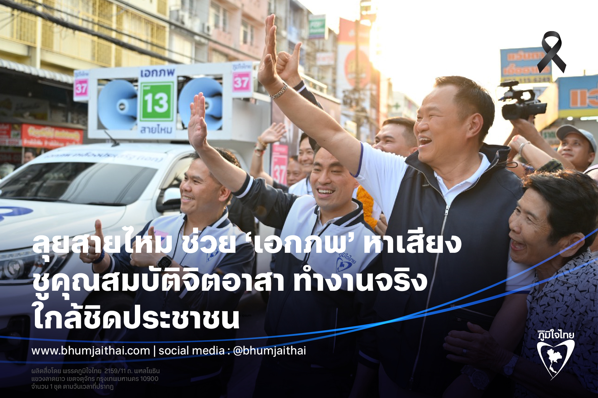19 มกราคม 2569 – นายอนุทิน ชาญวีรกูล หัวหน้าพรรคภูมิใจไทย ลงพื้นที่เขตสายไหม กรุงเทพมหานคร เพื่อช่วยหาเสียงให้นายเอกภพ เหลืองประเสริฐ หรือ “เอก สายไหมต้องรอด” ผู้สมัครสมาชิกสภาผู้แทนราษฎร เขต 11 พรรคภูมิใจไทย ท่ามกลางบรรยากาศคึกคัก มีประชาชนให้การต้อนรับอย่างอบอุ่น พร้อมส่งกำลังใจอย่างล้นหลามตลอดการลงพื้นที่