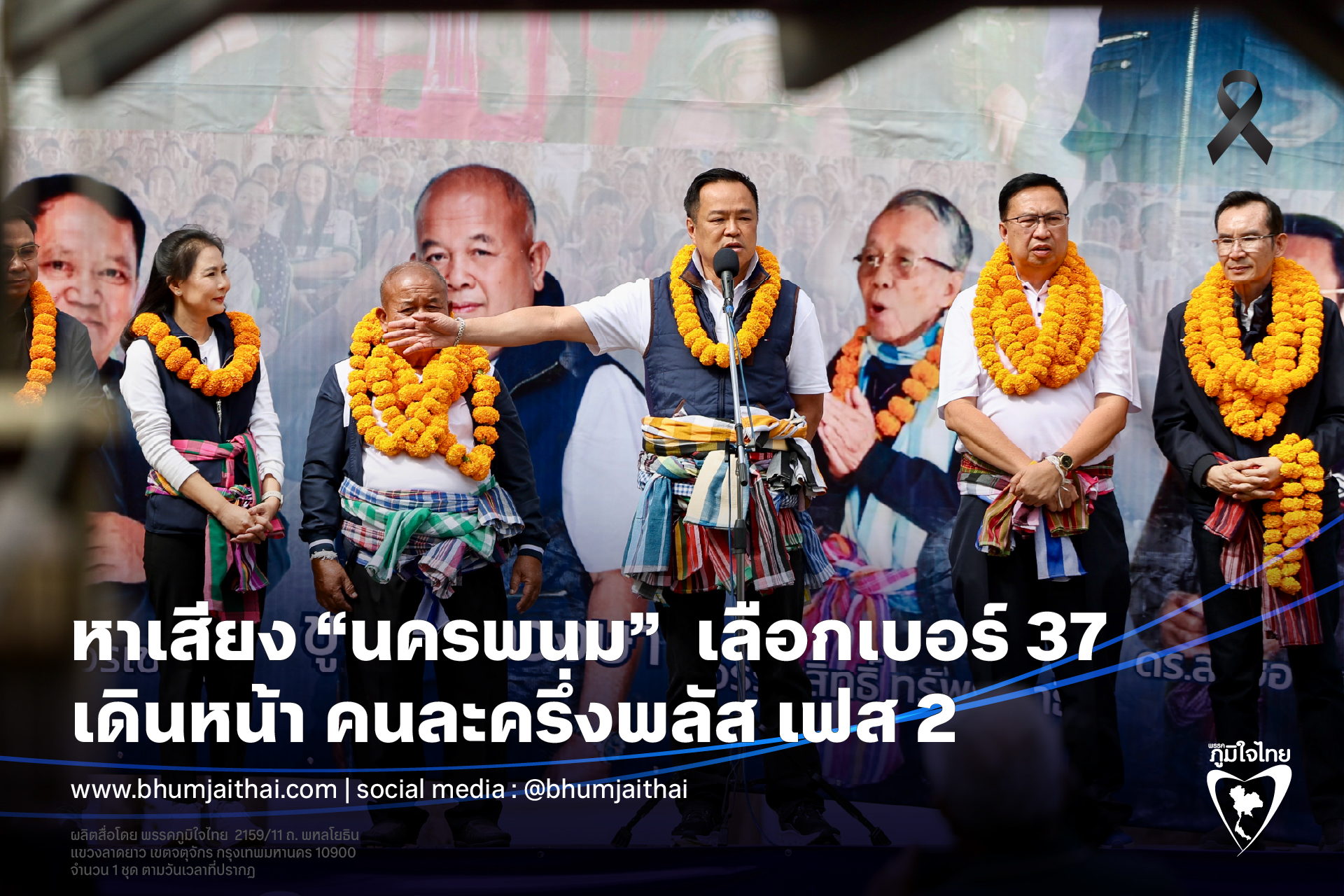 “อนุทิน” หาเสียง “นครพนม” ย้ำผลงาน คืนศักดิ์ศรีประเทศ ดันราคาข้าว–ฟอกไตฟรีทุกระบบ อ้อนเลือกเบอร์ 37 เดินหน้า คนละครึ่งพลัส เฟส 2