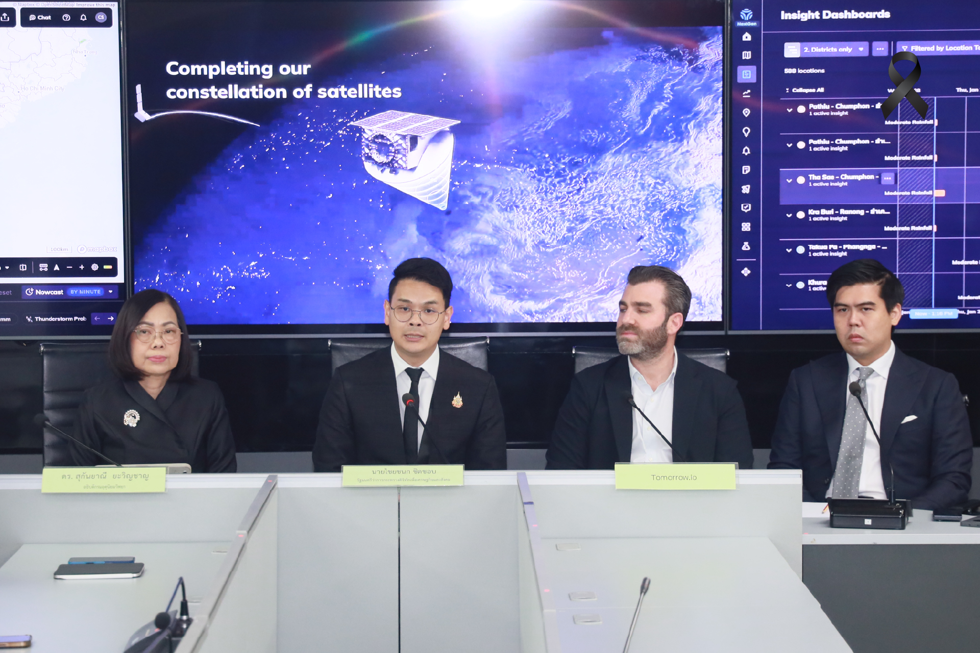 นายไชยชนก ชิดชอบ รัฐมนตรีว่าการกระทรวงดิจิทัลเพื่อเศรษฐกิจและสังคม (ดีอี) เป็นประธานการแถลงข่าวความคืบหน้าการดำเนินโครงการนำร่องการยกระดับระบบเตือนภัยพิบัติด้วยดาวเทียม Tomorrow.io โดยมีนางสาวสุกันยาณี ยะวิญชาญ อธิบดีกรมอุตุนิยมวิทยา และผู้แทนจากบริษัท Tomorrow.io เข้าร่วม ณ ศูนย์ปฏิบัติการพยากรณ์อากาศ ชั้น 11 อาคาร 50 ปี อุตุนิยมวิทยา กรมอุตุนิยมวิทยา บางนา กทม.