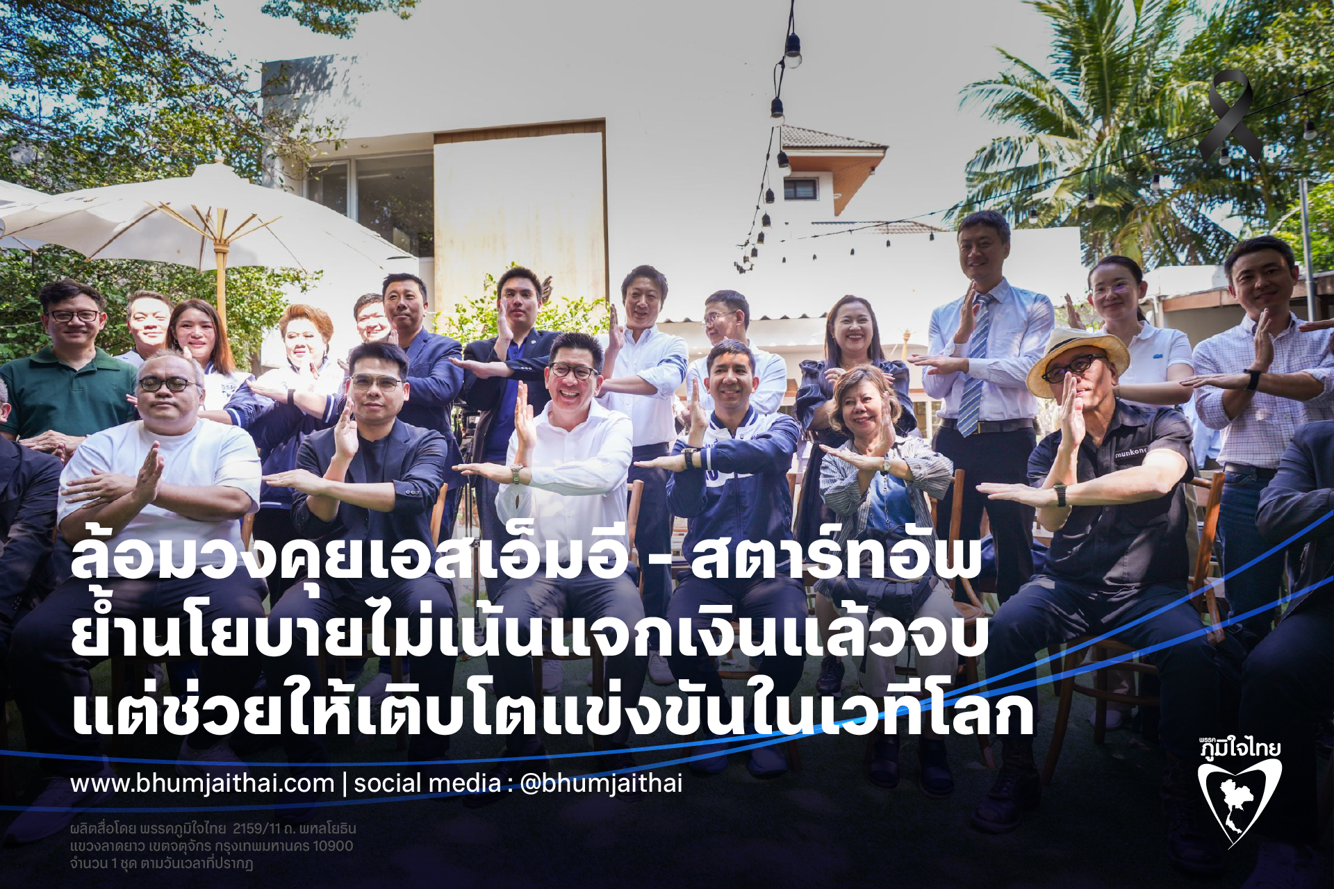 นายเอกนิติ กล่าวว่า นโยบายที่เราทำพยายามส่งเสริมสตาร์ทอัพไทย เราไม่ได้แจกเงินให้ไปแล้วจบ แต่เป็นการเพิ่มทักษะ หาตลาดให้ เพราะเราเชื่อว่าสตาร์ทอัพไทยคือหัวใจสำคัญ ที่จะเชื่อมโยงกับธุรกิจขนาดใหญ่ และเมดอินไทยแลนด์ เอสเอ็มอีพลัสก็จะช่วยคนไทยจริงๆ พรรคภูมิใจไทยไม่ได้เน้นแจก แต่เน้นช่วยธุรกิจให้เข้าถึงโอกาส จับมือกันให้ตลาดสตาร์ทอัพโตไปด้วยกัน