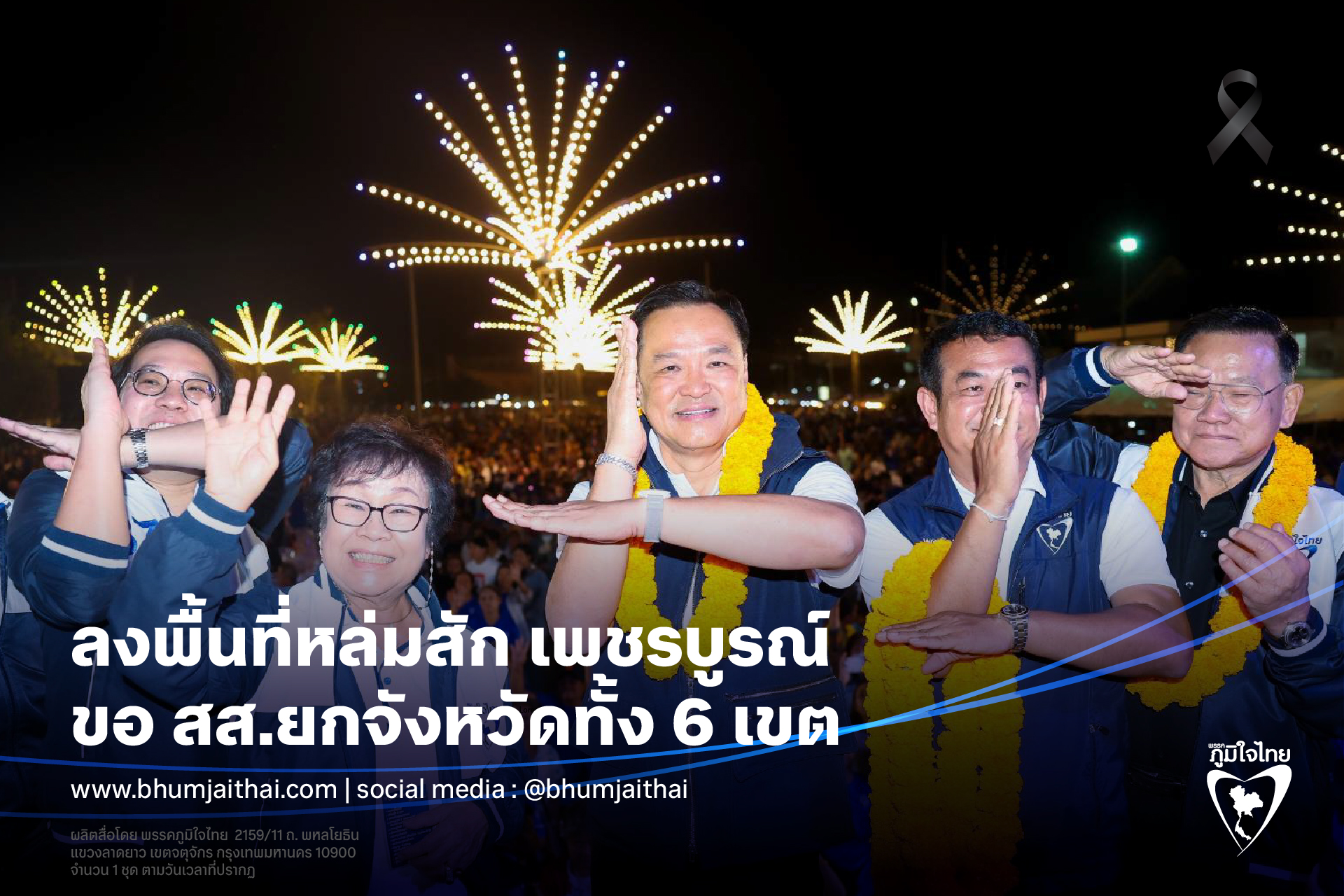 เมื่อเวลา 17.00 น. วันที่ 29 มกราคม 2569 นายอนุทิน ชาญวีรกูล หัวหน้าพรรคภูมิใจไทย ลงพื้นที่อำเภอหล่มสัก จังหวัดเพชรบูรณ์ เพื่อช่วยหาเสียงผู้สมัครสมาชิกสภาผู้แทนราษฎร พรรคภูมิใจไทย มีแกนนำในพื้นที่ รวมถึงผู้สมัคร สส.ทั้ง 6 เขต ร่วมลงพื้นที่อย่างพร้อมเพรียง
