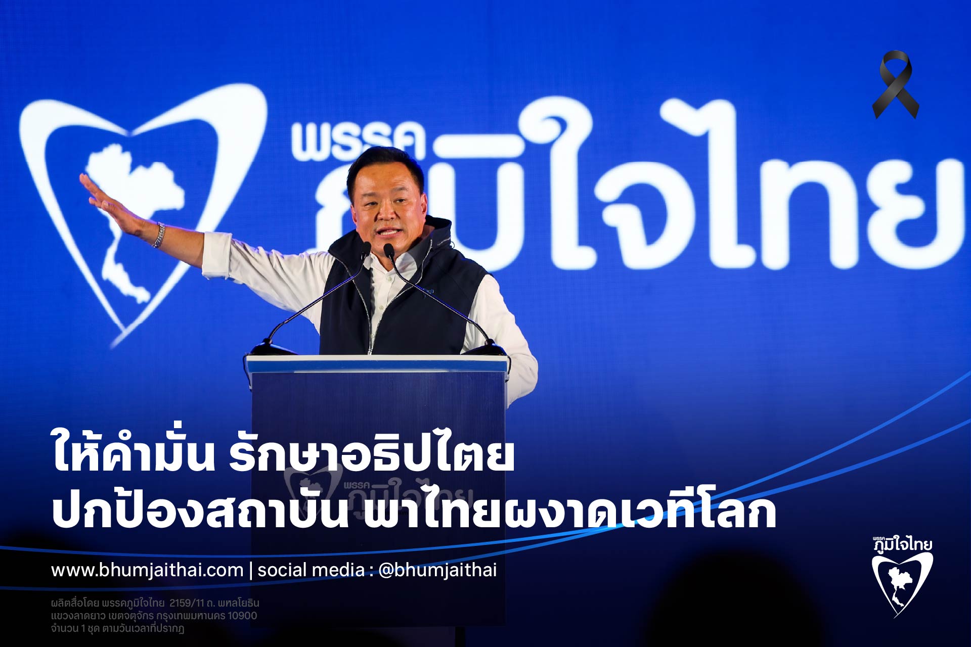 เลือกภูมิใจไทย ประเทศไทยไร้เสี่ยง ! “อนุทิน” ให้คำมั่น รักษาอธิปไตย ปกป้องสถาบัน พาไทยผงาดเวทีโลก สร้างเศรษฐกิจมั่นคง