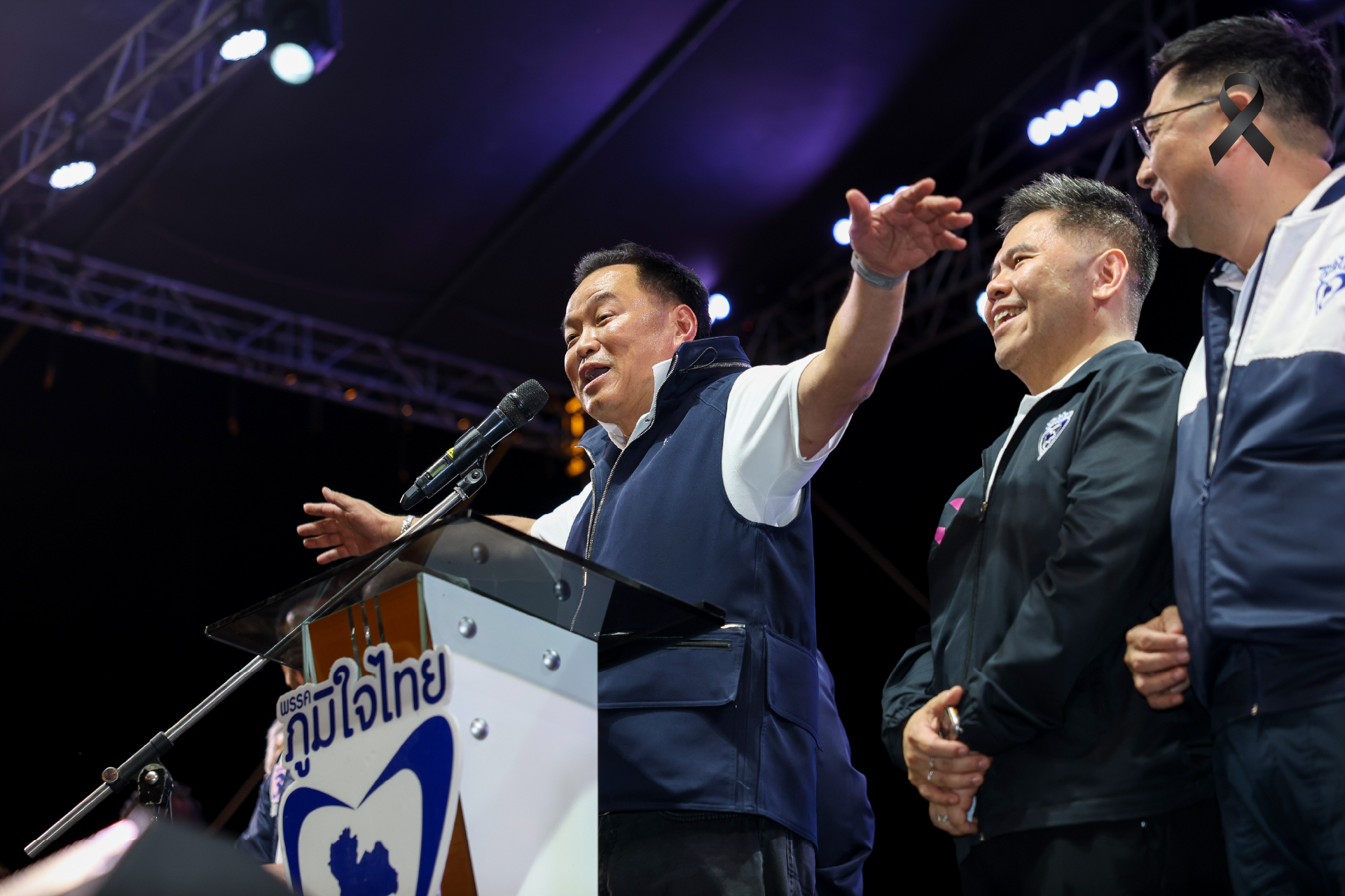 บรรยากาศเวทีปราศรัยใหญ่ของพรรคภูมิใจไทย ณ อาคารอเนกประสงค์ สำนักงานเทศบาลตำบลท่าระหัด อำเภอเมือง จังหวัดสุพรรณบุรี เมื่อช่วงค่ำวันที่ 2 กุมภาพันธ์ 2569 เป็นไปอย่างคึกคัก มีประชาชนเข้าร่วมรับฟังจำนวนมาก ท่ามกลางบรรยากาศการหาเสียงโค้งสุดท้ายก่อนวันเลือกตั้ง 8 กุมภาพันธ์นี้