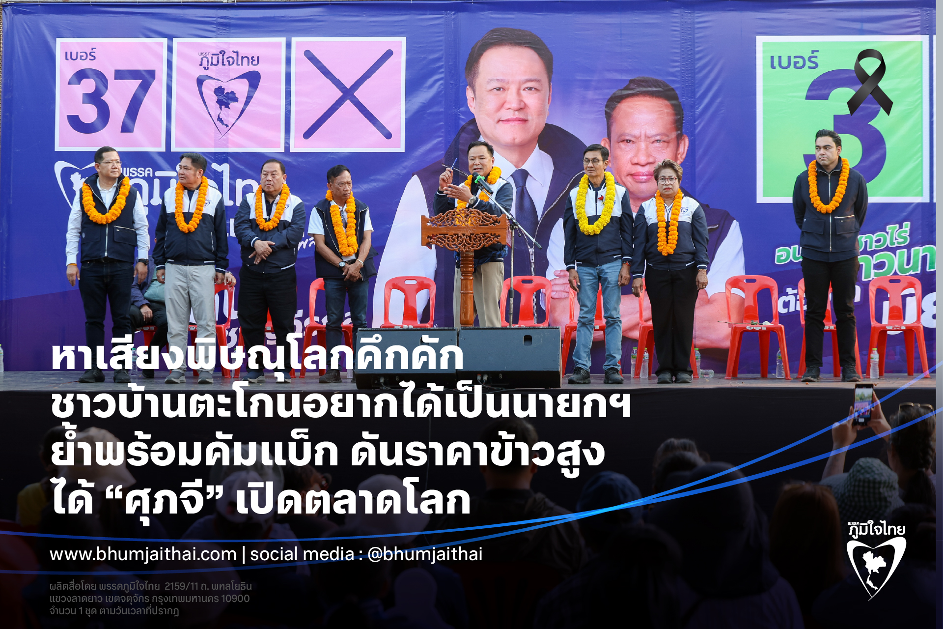ในประเด็นราคาข้าว นายอนุทิน ระบุว่า ชาวพิษณุโลกจำนวนมากเป็นชาวนา พรรคภูมิใจไทยต้องการให้ราคาข้าวสูงขึ้นอย่างเป็นธรรม โดยมี นางศุภจี สุธรรมพันธุ์ ช่วยผลักดันสินค้าเกษตรไทยสู่ตลาดโลก เพราะประเทศไทยมีความมั่นคงทางอาหาร ท่ามกลางสถานการณ์โลกที่เปราะบาง พร้อมย้ำว่าผู้สมัคร ส.ส. ของพรรคคือกลไกสำคัญในการสะท้อนเสียงชาวนาและขับเคลื่อนนโยบายให้เกิดผลจริง