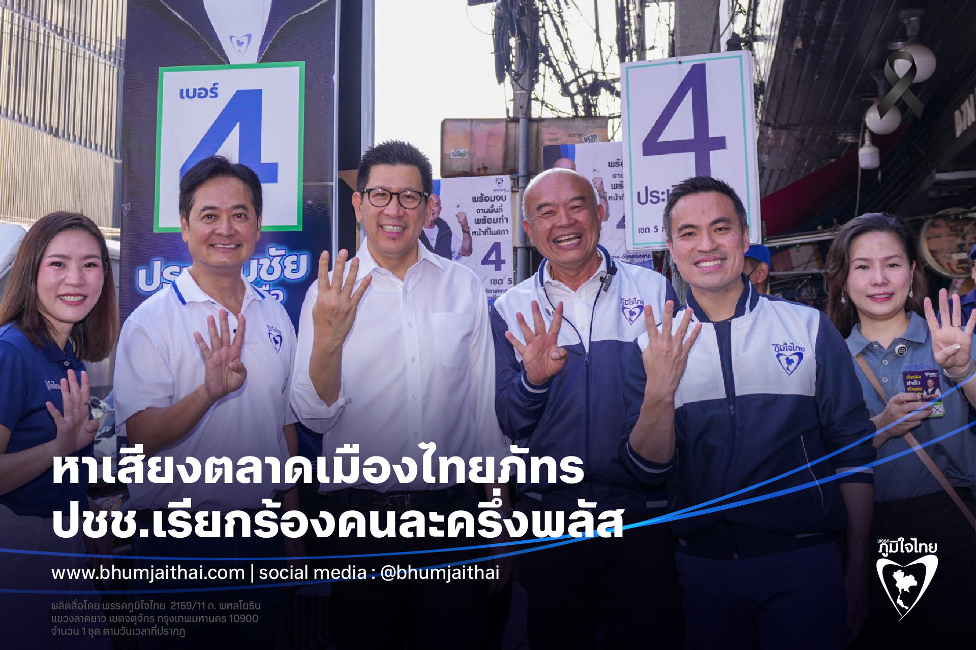 วันที่ 5 กุมภาพันธ์ 2569 เวลา 08.00 น. แกนนำพรรคภูมิใจไทย นำโดย นายเอกนิติ นิติทัณฑ์ประภาศ ผู้ช่วยหาเสียง พรรคภูมิใจไทย, นางสาวศุภมาส อิศรภักดี แม่ทัพหาเสียงพื้นที่กทม., นายเอกนัฏ พร้อมพันธุ์ แม่ทัพหาเสียงกทม. และนายอนุชา บูรพชัยศรี ผู้สมัคร สส.บัญชีรายชื่อ ลงพื้นที่ช่วย นายประเดิมชัย บุญช่วยเหลือ ผู้สมัครสส. กทม.เขตห้วยขวาง-วังทองหลาง พรรคภูมิใจไทย เบอร์ 4 เดินพบปะประชาชนที่ตลาดเมืองไทยภัทร โดยบรรยากาศเป็นไปด้วยความคึกคัก มีประชาชนเข้ามาขอถ่ายรูปเป็นจำนวนมาก พ่อค้าแม่ค้าต่างชื่นชอบโครงการคนละครึ่งพลัส เพราะช่วยให้กระตุ้นเศรษฐกิจ และอยากให้กลับมาทำเฟส 2 ต่อเนื่องทันที