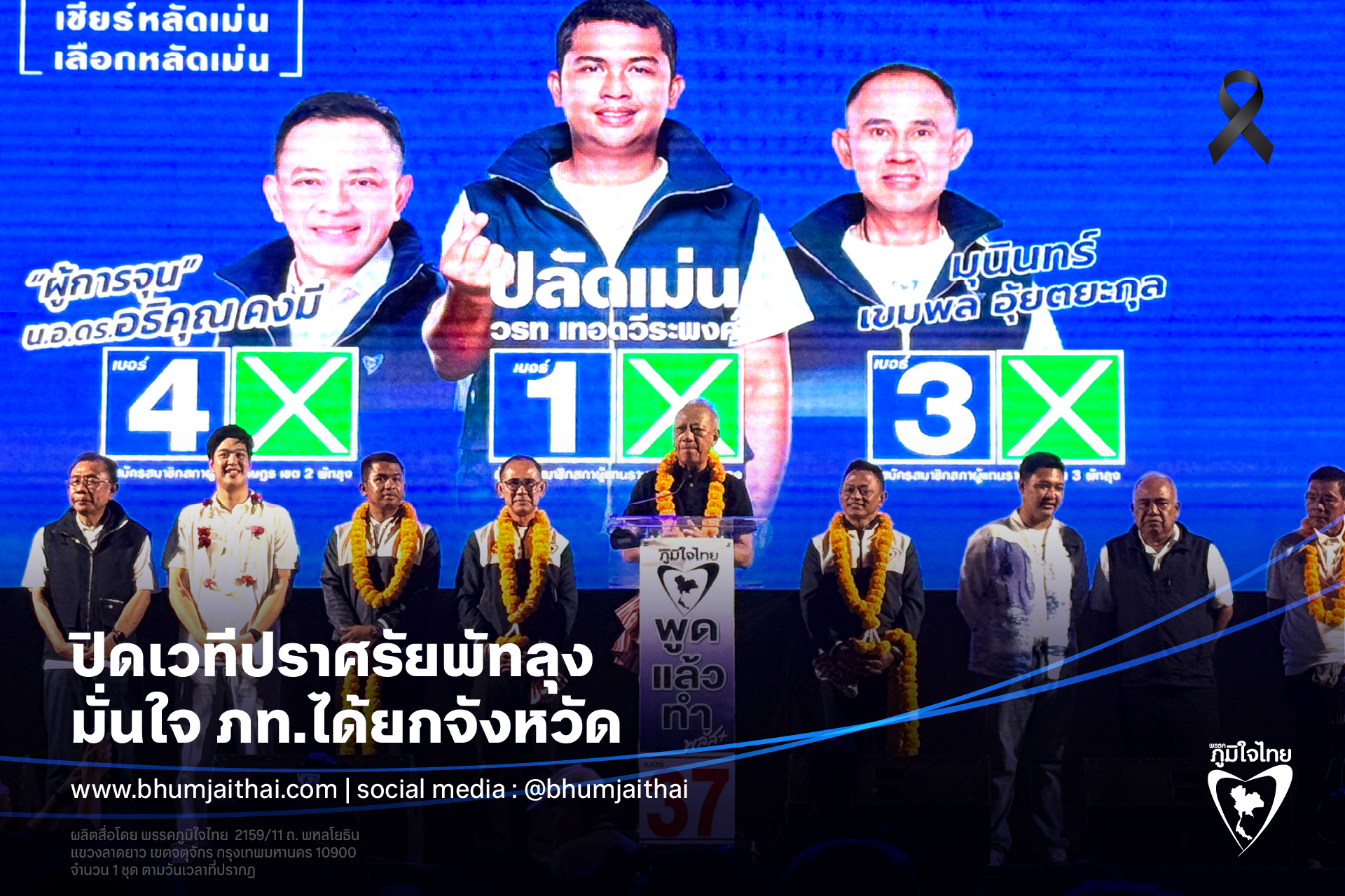 นอกจากนี้ ยังกล่าวถึงเสียงวิจารณ์เรื่องนโยบาย โดยย้ำว่าพรรคภูมิใจไทยมีทีมนักบริหารมืออาชีพระดับประเทศ ครบทั้งด้านเศรษฐกิจ ด้านสังคม และความมั่นคง การปกป้องอธิปไตยของชาติ มยืนยันว่าแม้นโยบายอาจไม่มาก แต่ทุกนโยบาย ทำได้จริง เห็นผลลัพธ์ พูดแล้วทำแน่นอน
