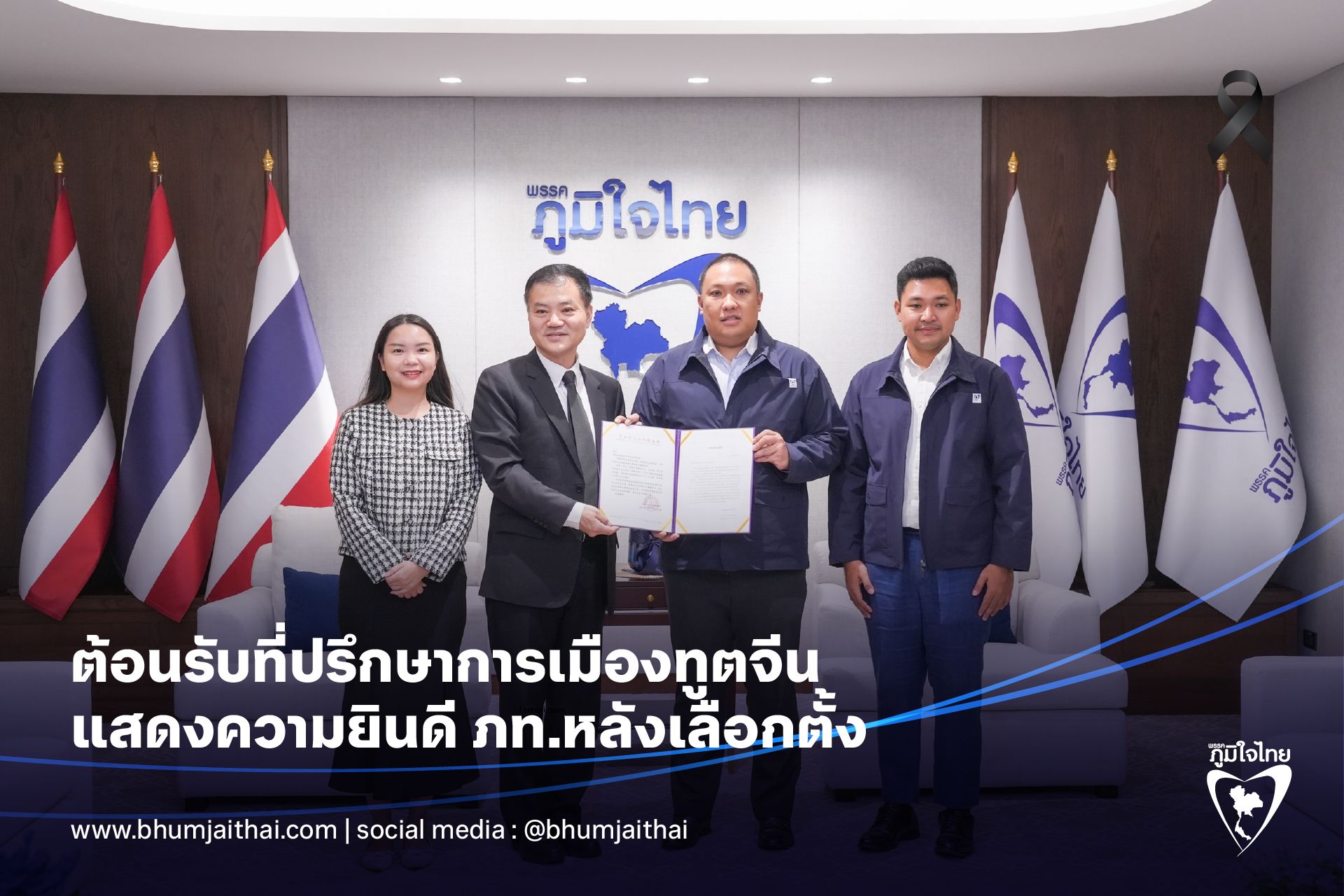 "ภูมิใจไทย" ต้อนรับที่ปรึกษาการเมืองทูตจีน แสดงความยินดีหลังเลือกตั้ง เชิญศึกษาดูงานกระชับความสัมพันธ์ไทย–จีน
