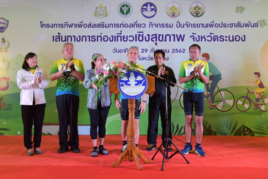 29 กันยายน 2562 เวลา 20:26พิพัฒน์ เปิดงานปั่นจักรยาน เส้นทางท่องเที่ยวเชิงสุขภาพ จ.ระนองรมว.ท่องเที่ยวและกีฬา ปั่นจักรยานเพื่อประชาสัมพันธ์ เส้นทางการท่องเที่ยวเชิงสุขภาพ จังหวัดระนอง วันที่ 29 กันยายน 2562 นายพิพัฒน์ รัชกิจประการ รัฐมนตรีว่าการกระทรวงการท่องเที่ยวและกีฬา เป็นประธานเปิดงานและร่วมปั่นจักรยาน ในโครงการกีฬาเพื่อส่งเสริมการท่องเที่ยว “ปั่นจักรยานเพื่อประชาสัมพันธ์เส้นทางการท่องเที่ยวเชิงสุขภาพ” ณ องค์การบริหารส่วนจังหวัดระนอง โดยมี นายพรเทพ ผ่องศรี รองผู้ว่าราชการจังหวัดระนอง, นายคงกฤษ ฉัตรมาลีรัตน์ สมาชิกสภาผู้แทนราษฎรจังหวัดระนอง, ดร.นาที รัชกิจประการ สมาชิกสภาผู้แทนราษฎรจังหวัดพัทลุง, หัวหน้าส่วนราชการ, ผู้ประกอบการภาคเอกชน และมีประชาชนเข้าร่วมปั่นจักรยานมากกว่า 1,000 คน รมว.พิพัฒน์ กล่าวว่า “จังหวัดระนองเป็นจังหวัดหนึ่งที่มีศักยภาพทางด้านการท่องเที่ยวสูง มีทรัพยากรทางการท่องเที่ยวที่โดดเด่น สวยงาม และมีความหลากหลายทางด้านวัฒนธรรมและประเพณี ซึ่งกิจกรรมในครั้งนี้นอกจากจะเป็นการส่งเสริมประชาสัมพันธ์การท่องเที่ยวเชิงสุขภาพแล้ว ยังเป็นการส่งเสริมให้นักท่องเที่ยวได้รับประสบการณ์ในการเดินทางท่องเที่ยวตามเส้นทางจักรยานและร่วมทำกิจกรรมที่เป็นประโยชน์สร้างสรรค์ สังคมวัฒนธรรม วิถีชีวิต ขนบธรรมเนียม ประเพณีประวัติศาสตร์ ของจังหวัดระนอง ให้เป็นที่รู้จักเพิ่มมากขึ้นอีกด้วย” ทั้งนี้ขบวนปั่นจักรยาน เพื่อประชาสัมพันธ์เส้นทางการท่องเที่ยว เชิงสุขภาพจังหวัดระนอง ยังมีกิจกรรม CSR ระหว่างเส้นทางปั่นจำนวน 4 จุด ได้แก่ จุดที่ 1 พระราชวังรัตนรังสรรค์ (จ้าลอง) ระยะทางจากจุด Start ถึงจุดที่ 1 ระยะทาง 1.5 กม. จุดที่2วัดสุวรรณคีรีวิหาร(วัดหน้าเมือง)ระยะทางจากจุดStartถึงจุดที่ 2 ระยะทาง 3 กม. จุดที่ 3 วัดวารีบรรพต (วัดบางนอน) ระยะทางจากจุด Start ถึงจุดที่ 3 ระยะทาง 7 กม. จุดที่ 4 วัดตโปทาราม (วัดบ่อน้าร้อน)/บ่อน้าร้อนรักษะวาริน ระยะทางจากจุด Start ถึงจุดที่ 4 ระยะทาง 11 กม. แชร์บทความนี้: