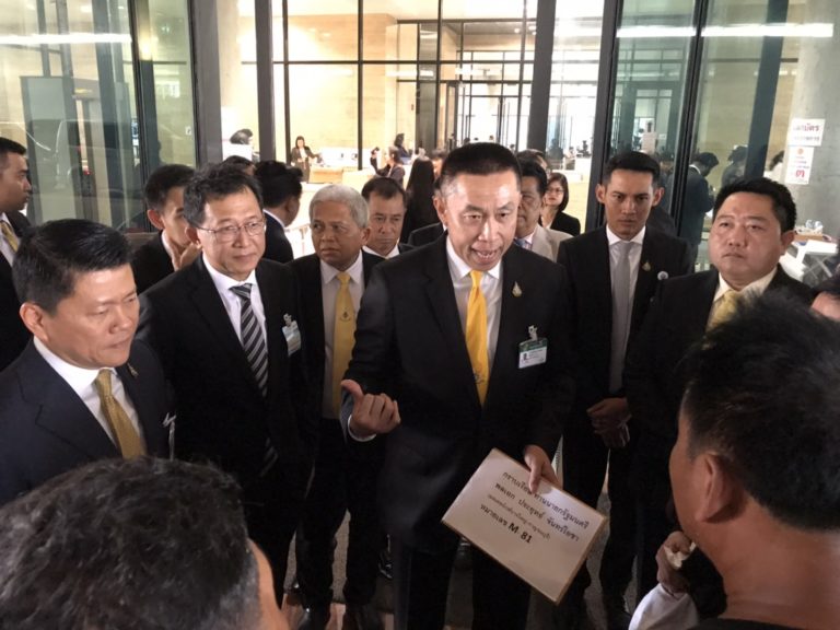 ทันทีที่เดินทางมาถึง นายศักดิ์สยาม ชิดชอบ รมว.กระทรวงคมนาคม พร้อมด้วย นายบุญลือ ประเสริฐโสภา รองหัวหน้าพรรคภูมิใจไทย , นายยศวัฒน์ มาไพศาลสิน ส.ส.กาญจนบุรี,นายชัชวาลล์ คงอุดม หัวหน้าพรรคพลังท้องถิ่นไทย และ นายสราวุธ ทรงวิไล อธิบดีกรรมการขนส่งทางราง กระทรวงคมนาคม เจ้าหน้าที่กระทรวงฯได้เดินเท้าไปหน้ารัฐสภาเพื่อพบตัวแทนพร้อมรับเอกสารเกี่ยวเนื่องกับการจ่ายเงินเวนคืนที่ดินของถนนสายดังกล่าว