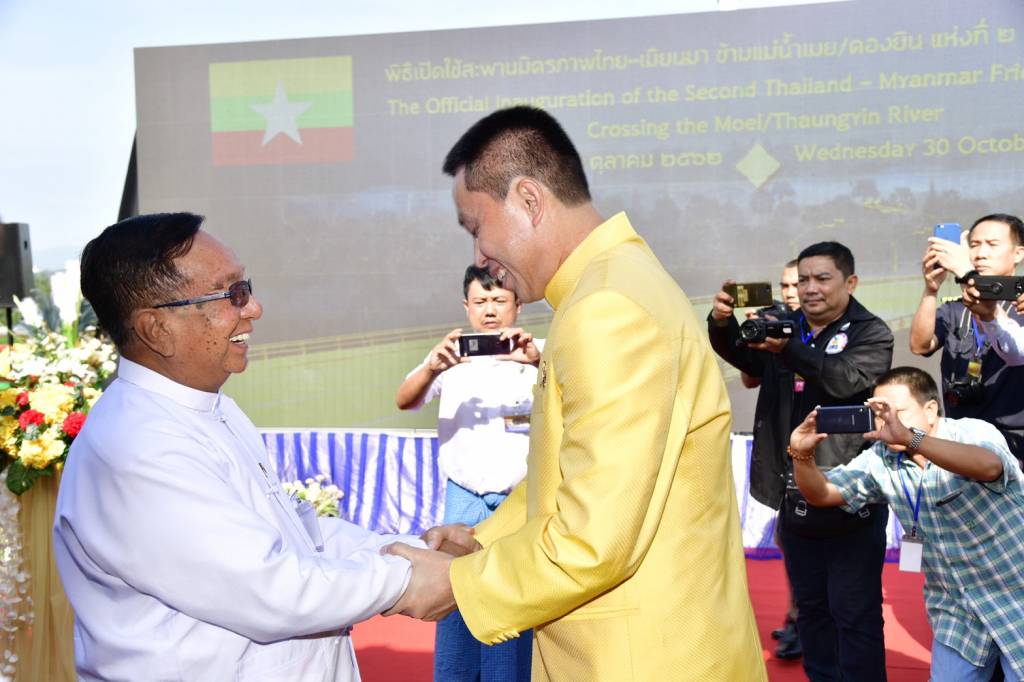 30 ตุลาคม 2562 เวลา 13:06สะพานมิตรภาพไทย-เมียนมา ข้ามแม่น้ำเมย/ตองยิน แห่งที่ 2 เปิดอย่างเป็นทางการ คาดมูลค่าการค้าชายแดนเพิ่มขึ้น แสนล้านนายศักดิ์สยาม ชิดชอบ รัฐมนตรีว่าการกระทรวงคมนาคม และ นายอู ฮัน ซอ รัฐมนตรีว่าการกระทรวงก่อสร้างสาธารณรัฐแห่งสหภาพเมียนมา เปิดใช้สะพานมิตรภาพไทย - เมียนมา ข้ามแม่น้ำเมย/ตองยิน แห่งที่ 2 วันนี้ (30 ตุลาคม 2562) เวลา 09.55 น. นายศักดิ์สยาม ชิดชอบ รัฐมนตรีว่าการกระทรวงคมนาคม และ นายอู ฮัน ซอ รัฐมนตรีว่าการกระทรวงก่อสร้างสาธารณรัฐแห่งสหภาพเมียนมา เป็นประธานเปิดใช้สะพานมิตรภาพไทย - เมียนมา ข้ามแม่น้ำเมย/ตองยิน แห่งที่ 2 อย่างเป็นทางการ โดยมี นายพิศักดิ์ จิตวิริยะวศิน รองปลัดกระทรวงคมนาคม นายสราวุธ ทรงศิวิไล อธิบดีกรมทางหลวง นายมัน วิน ไข่ ตัน ประธานสภาแห่งสาธารณรัฐแห่งสหภาพเมียนมา นาย อู โซ วิน รัฐมนตรีว่าการกระทรวงการวางแผนและการคลัง ดร. ตัน เมี๊ย รัฐมนตรีว่าการกระทรวงพาณิชย์ นาย นัน คิน ทวย เมี๊ยะ มุขมนตรีแห่งรัฐกะเหรี่ยง นาย อู จอ ลิน รัฐมนตรีช่วยว่าการกระทรวงก่อสร้าง เอกอัครราช ทูตไทย ณ กรุงย่างกุ้ง เอกอัครราชทูตเมียนมาประจำประเทศไทย คณะผู้บริหารระดับสูงพร้อมเจ้าหน้าที่หน่วยงานในสังกัดกระทรวงคมนาคม และสื่อมวลชนเข้าร่วมพิธี ณ จุดกึ่งกลางสะพานมิตรภาพฯ แห่งที่ 2 อำเภอแม่สอด จังหวัดตาก ในการนี้ อธิบดีกรมทางหลวงได้กล่าวรายงานความเป็นมาโครงการก่อสร้างสะพานมิตรภาพฯ แห่งที่ 2 และอธิบดีกรมสะพาน สาธารณรัฐแห่งสหภาพเมียนมา ได้กล่าวขอบคุณรัฐบาลไทย โดยรัฐมนตรีว่าการกระทรวงคมนาคม และรัฐมนตรีว่าการกระทรวงก่อสร้าง ได้กล่าวแสดงความยินดีในการเปิดใช้สะพานและประโยชน์ที่ประชาชนทั้งสองประเทศจะได้รับ พร้อมร่วมกันตัดริบบิ้นแสดงสัญลักษณ์การเปิดใช้สะพานอย่างเป็นทางการ ทั้งนี้ ภายหลังเสร็จสิ้นพิธีเปิดได้ทดลองเดินรถข้ามแดน (Dry - run) และคณะได้เดินทางไปยังอาคารด่านพรมแดนฝั่งเมียนมาเพื่อทำพิธีส่งมอบอาคารด่านพรมแดนและถนนฝั่งเมียนมา รวมทั้งส่งมอบวัสดุอุปกรณ์อาคารด่านพรมแดนฝั่งเมียนมาแก่รัฐบาลสาธารณรัฐแห่งสหภาพเมียนมาต่อไป นายศักดิ์สยาม ชิดชอบ กล่าวว่า รู้สึกยินดีเป็นอย่างยิ่ง ที่ได้มีโอกาสมาเป็นประธานร่วมในวันนี้ นับตั้งแต่การเปิดใช้สะพานมิตรภาพฯ แห่งที่ 1 ส่งผลให้การคมนาคมขนส่งระหว่างกันของทั้ง 2 ประเทศ มีความสะดวกรวดเร็วมากขึ้น โดยในปี 2561 มูลค่าการค้าชายแดนระหว่างไทย-เมียนมา สูงถึง 1.9 แสนล้านบาท โดยเฉพาะบริเวณด่านพรมแดนแม่สอด ที่มีมูลค่าการค้าชายแดนสูงถึง 78,000 ล้านบาท และมีจำนวนรถวิ