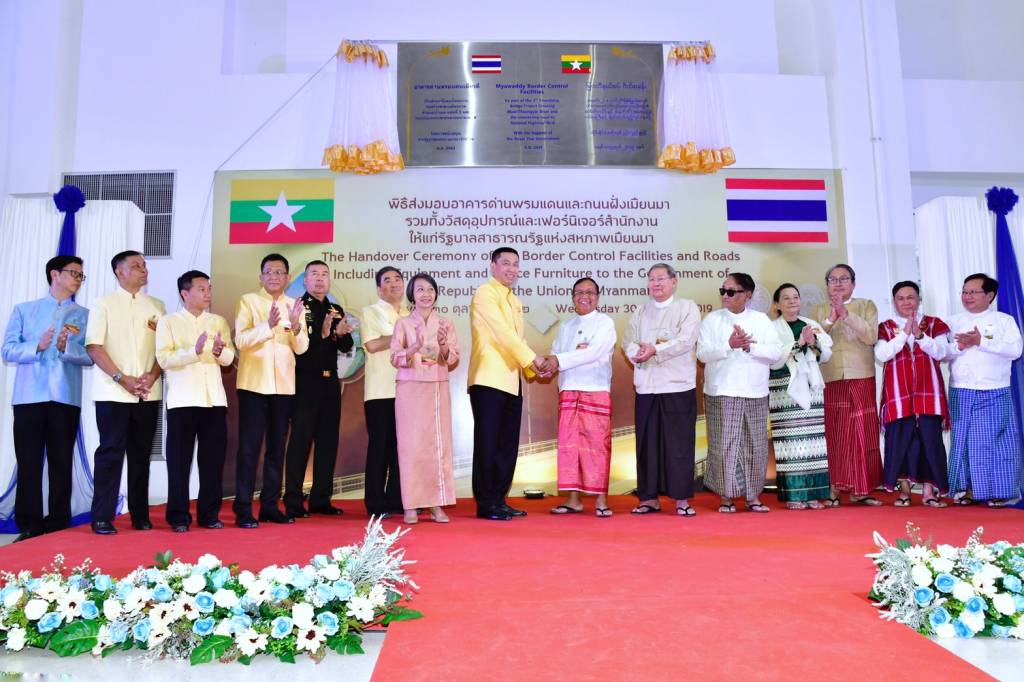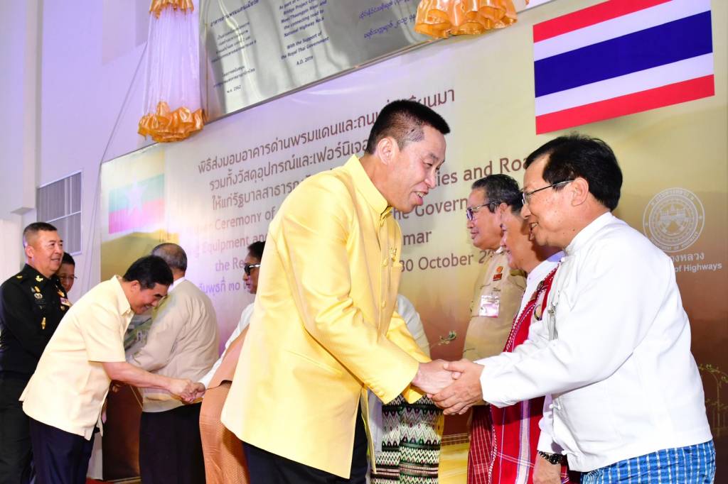 30 ตุลาคม 2562 เวลา 13:39คมนาคมส่งมอบอาคารด่านพรมแดนและถนน รวมทั้งวัสดุอุปกรณ์อาคารด่านพรมแดนแก่รัฐบาลเมียนมาวันนี้ (30 ตุลาคม 2562) เวลา 10.40 น. นายศักดิ์สยาม ชิดชอบ รัฐมนตรีว่าการกระทรวงคมนาคม ในนามราชอาณาจักรไทย เป็นประธานพิธีส่งมอบอาคารด่านพรมแดนและถนนฝั่งเมียนมา รวมทั้งวัสดุอุปกรณ์ เฟอร์นิเจอร์สำนักงานแก่รัฐบาลสาธารณรัฐแห่งสหภาพเมียนมา และ นายอู ฮัน ซอ รัฐมนตรีว่าการกระทรวงก่อสร้างสาธารณรัฐแห่งสหภาพเมียนมา เป็นผู้รับมอบ โดยมี นายพิศักดิ์ จิตวิริยะวศิน รองปลัดกระทรวงคมนาคม นายสราวุธ ทรงศิวิไล อธิบดีกรมทางหลวง คณะผู้บริหารระดับสูงพร้อมเจ้าหน้าที่หน่วยงานในสังกัดกระทรวงคมนาคม ผู้ที่เกี่ยวข้องจากทั้ง 2 ประเทศ และสื่อมวลชนเข้าร่วมพิธี ณ อาคารด่านพรมแดนฝั่งเมียนมา จังหวัดเมียวดี สาธารณรัฐแห่งสหภาพเมียนมา อาคารด่านพรมแดนและถนนฝั่งเมียนมา เป็นส่วนหนึ่งในโครงการก่อสร้างทางเลี่ยงเมืองแม่สอด พร้อมสะพานมิตรภาพไทย-เมียนมา ข้ามแม่น้ำเมย/ตองยิน แห่งที่ 2 ของกรมทางหลวง กระทรวงคมนาคม ซึ่งคณะรัฐมนตรีได้อนุมัติกรอบวงเงิน 3,900 ล้านบาท ประกอบด้วย ค่างานฝั่งไทยจำนวน 2,900 ล้านบาท และอนุมัติเงินช่วยเหลือแบบให้เปล่าแก่สาธารณรัฐแห่งสหภาพเมียนมา จำนวน 1,000 ล้านบาท เพื่อใช้ในการดำเนินโครงการ และอนุมัติวงเงินเพิ่มเติมอีกจำนวน 232 ล้านบาท เป็นค่าจัดกรรมสิทธิ์ที่ดินฝั่งไทย ค่าก่อสร้างอาคารด่านพรมแดนทั้งสองฝั่ง เนื่องจากมีการปรับรูปแบบด้านสถาปัตยกรรมให้เข้ากับเอกลักษณ์ของแต่ละประเทศ รวมงบประมาณที่ใช้ในการดำเนินการทั้งสิ้น 4,132 ล้านบาท โดยรัฐบาลไทยได้ให้ความช่วยเหลือแบบให้เปล่าแก่รัฐบาลสาธารณรัฐแห่งสหภาพเมียนมาในส่วนของค่าก่อสร้างสะพาน ถนน และอาคารด่านพรมแดนในฝั่งเมียนมา แชร์บทความนี้: