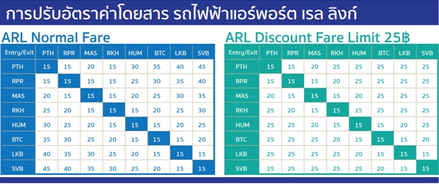 โดยมีรายละเอียดการปรับลดอัตราค่าโดยสารรถไฟฟ้า Airport Rail Link ดังนี้