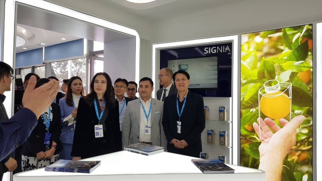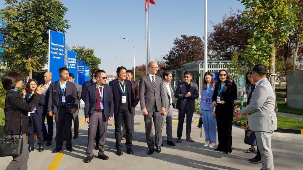 20 พฤศจิกายน 2562 เวลา 09:05"รมช.มนัญญา" เยี่ยมชมศูนย์เทคโนโลยีผลิตบรรจุภัณฑ์ในจีนเมื่อวันที่ 19 พฤศจิกายน 2562 น.ส.มนัญญา ไทยเศรษฐ์ รัฐมนตรีช่วยว่าการกระทรวงเกษตรและสหกรณ์ พร้อมด้วย คณะผู้บริหาร เดินทางเยี่ยมชมศูนย์เทคโนโลยีผลิตบรรจุภัณฑ์เครื่องดื่มของบริษัท SIG (SIG AP Tech Center) ณ เมือง Suzhou สาธารณรัฐประชาชนจีน เป็นศูนย์พัฒนาเทคโนโลยีและนวัตกรรมอุตสาหกรรมเครื่องดื่มในระดับภูมิภาคเอเชียแปซิฟิค มีการนำเสนอและสาธิตถึงศักยภาพของเทคโนโลยีเครื่องจักรบรรจุนมระบบ UHT แบบ High speed ทันสมัย และมีความหลากหลายคุณลักษณะในการผลิตผลิตภัณฑ์ให้ตรงตามความต้องการของตลาด รวมถึงมีห้องปฏิบัติการที่ให้บริการตรวจสอบคุณภาพของกล่องกระดาษและผลิตภัณฑ์เครื่องดื่มที่ทันสมัยตลอดกระบวนการผลิต เพื่อให้มั่นใจได้ว่าจะได้บรรจุภัณฑ์เครื่องดื่มที่มีรูปลักษณ์ที่ได้รับการออกแบบให้น่าสนใจต่อผู้บริโภค และผลิตภัณฑ์เครื่องดื่มมีคุณภาพที่ดี แชร์บทความนี้:
