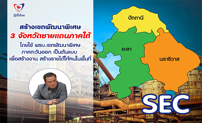 พรรคภูมิใจไทย มีแนวคิดที่จะสร้างเขตพัฒนาเศรษฐกิจพิเศษ 3 จังหวัดชายแดนภาคใต้ หรือ SEC (คือ Southern Economic Corridor) โดยใช้ พ.ร.บ.เขตพัฒนาเศรษฐกิจพิเศษภาคตะวันออก หรือ EEC (Eastern Economic Corridor) เป็นต้นแบบ ซึ่งมีเนื้อหาเขียนไว้อย่างน่าสนใจว่า