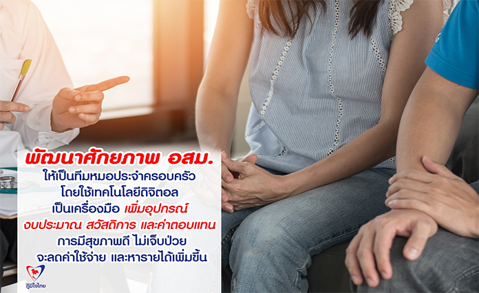 ข้อ 3 พัฒนาศักยภาพ อสม. ให้เป็นทีมหมอประจำครอบครัว โดยใช้เทคโนโลยีดิจิตอล เป็นเครื่องมือ เพิ่มอุปกรณ์ งบประมาณ สวัสดิการ และ ค่าตอบแทน การมีสุขภาพดี ไม่เจ็บป่วย จะลดค่าใช้จ่าย และหารายได้เพิ่มขึ้น