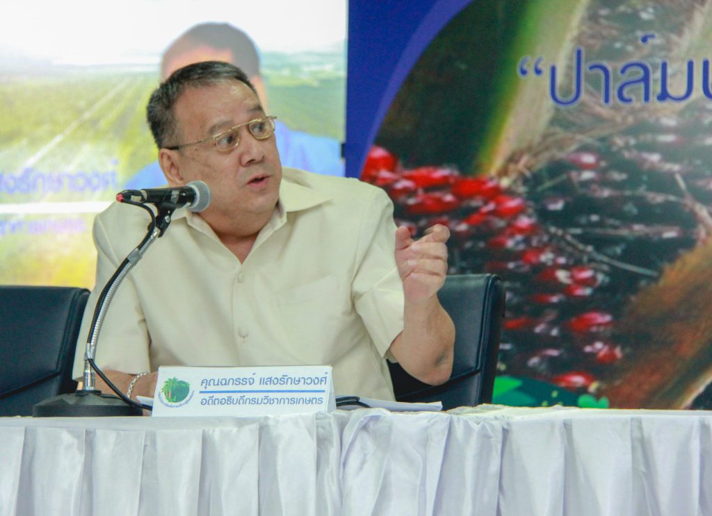 นายฉกรรจ์ แสงรักษาวงศ์ อดีตอธิบดีกรมวิชาการเกษตร กล่าวว่า ผลผลิตปาล์มทั่วโลกในปี 2560 มีประมาณ 72.2 ล้านตัน โดยอินโดนีเชีย ผลิตได้มากที่สุด 36 ล้านตัน หรือประมาณ 55.4 % ของโลก โดยส่งออก 56.2% มาเลเซีย ผลิตได้ 18.9 ล้านตัน 29.5% ส่งออก 34.4% ส่วน ประเทศไทย ผลิตได้ 2.5 ล้านตัน คิดเป็น 3.9% ของโลก และมีปริมาณการส่งออก 0.5%
