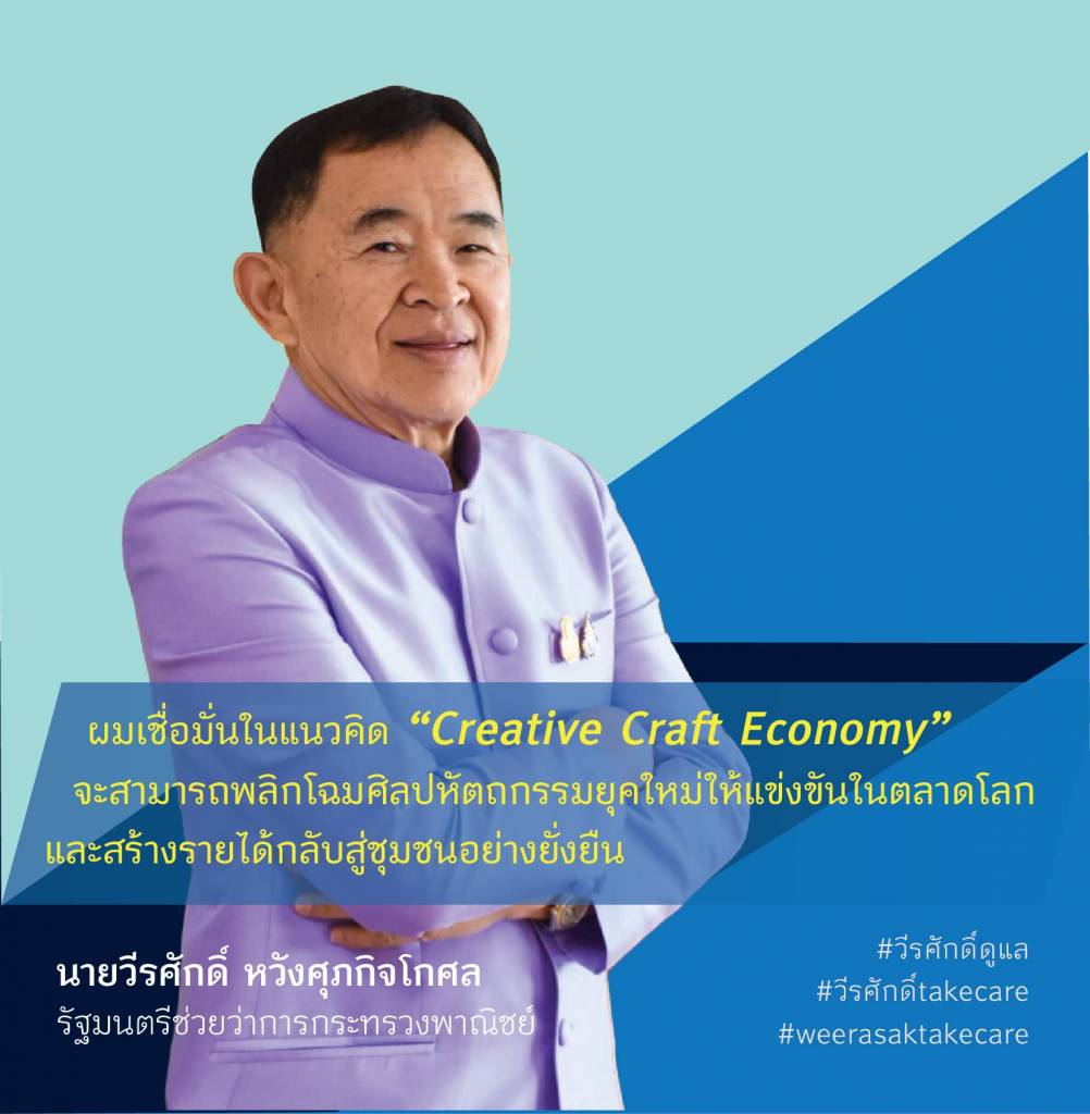 16 มกราคม 2563 เวลา 13:13วีรศักดิ์” ชู เศรษฐกิจสร้างสรรค์ พลิกโฉมงานหัตถศิลป์ไทย สร้างมูลค่าเพิ่ม ยกระดับขีดความสามารถในการแข่งขัน สร้างรายได้กลับสู่ชุมชนอย่างยั่งยืนรมช.พาณิชย์ฯ ลงพื้นที่การประชุมเครือข่ายผู้ผลิตงานหัตถศิลป์ในกลุ่มภาคกลาง ส่งเสริมการใช้เศรษฐกิจสร้างสรรค์ พลิกโฉมศิลปหัตถกรรมยุคใหม่ให้แข่งขันในตลาดโลก มุ่งผลักดันให้เกิด Creative Craft Economy สร้างรายได้กลับสู่ชุมชนอย่างยั่งยืน นายวีรศักดิ์ หวังศุภกิจโกศล รัฐมนตรีช่วยว่าการกระทรวงพาณิชย์ กล่าวว่า ปัจจุบันตลาดสินค้าเชิงสร้างสรรค์ของโลกขยายตัวอย่างต่อเนื่องทุกปี ประเทศไทยเองได้นำแนวคิดเศรษฐกิจสร้างสรรค์ (Creative Economy) มาใช้ในกระบวนการพัฒนาประเทศ และการขับเคลื่อนเศรษฐกิจบนพื้นฐานของการใช้องค์ความรู้ (Knowledge) การศึกษา (Education) การสร้างสรรค์งาน (Creativity) การใช้ทรัพย์สินทางปัญญา (Intellectual Property) ที่เชื่อมโยงกับพื้นฐานทางวัฒนธรรม ตลอดจนการสั่งสมความรู้ของสังคมและเทคโนโลยีนวัตกรรมใหม่ ซึ่งที่ผ่านมาไทยมีการพัฒนาเศรษฐกิจสร้างสรรค์บนพื้นฐานของการผสมผสานระหว่างวัฒนธรรม ประเพณีและภูมิปัญญา เข้ากับนวัตกรรมและเทคโนโลยีสมัยใหม่ เพื่อสร้างมูลค่าเพิ่มและเชื่อมโยงภาคการผลิตและการบริการต่างๆ ให้มีประสิทธิภาพมากขึ้น อาทิ อุตสาหกรรมรถยนต์ อุตสาหกรรม ดิจิทัลคอนเทนต์ อุตสาหกรรมออกแบบ และเครือข่ายวิสาหกิจ สินค้าหัตถกรรมพื้นบ้านเพื่อการส่งออก เป็นต้น ซึ่งประเทศไทยถือว่ามีความโดดเด่นในเรื่องความหลากหลายทางวัฒนธรรม และองค์ความรู้ภูมิปัญญาด้านงานศิลปหัตถกรรมที่สามารถนำมาต่อยอดในเชิงสร้างสรรค์ได้อย่างกว้างขวาง จึงถือเป็นโอกาสทางธุรกิจให้แก่ผู้ประกอบการงานหัตถศิลป์ของไทยที่จะปรับปรุงพัฒนาและนำเอาแนวคิดเศรษฐกิจสร้างสรรค์มาเสริมสร้างเอกลักษณ์และความแปลกใหม่ให้กับสินค้าและบริการ เพื่อเพิ่มขีดความสามารถในการแข่งขัน ยกระดับด้านแรงงานทั้งในด้านทักษะฝีมือ และการมีคุณภาพชีวิตที่ดีแก่ผู้ผลิตซึ่งเป็นชาวบ้านและคนในชุมชน เป็นการสร้างความแข็งแกร่งให้กับผู้ผลิต ชุมชน และผู้ประกอบการงานหัตถศิลป์อย่างยั่งยืน “ผมคิดว่าไทยมีความพร้อมในทุกด้านที่จะนำเอาแนวคิดเศรษฐกิจสร้างสรรค์มาพัฒนาโดยเฉพาะในวงการศิลปหัตถกรรมไทยให้กลายเป็น Creative Craft Economy ซึ่งเป็นสิ่งจำเป็นมากในปัจจุบันและในอนาคต เพราะประเทศไทยมีต้นทุนในแง่ของคุณค่าจากภูมิปัญญา วัตถุดิบ และแรงงานในชุมชน ผสมผสานกับความคิดสร้างสรรค์และนวัตกรรมใหม่ๆ เพื่อพัฒนาต่อยอดผลงานหัตถศิลป์ สร้างมูลค่าเพิ่มให้กับ