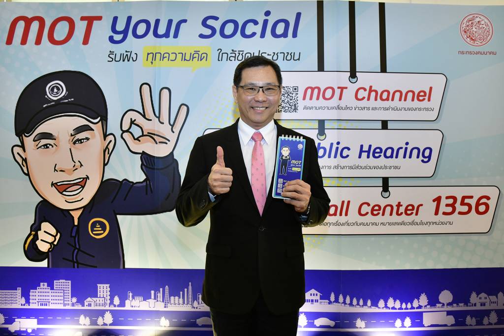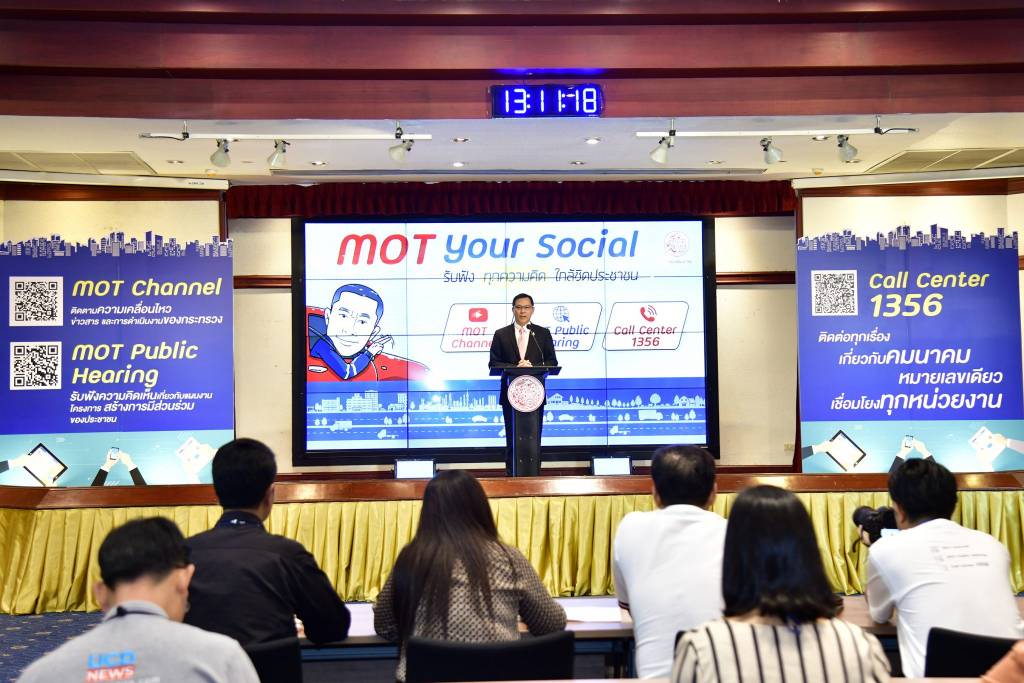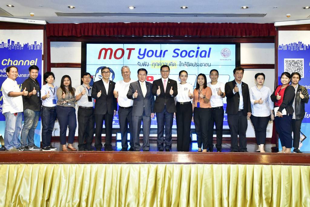 นายชัยวัฒน์ ทองคำคูณ กล่าวว่า รัฐมนตรีว่าการกระทรวงคมนาคม (นายศักดิ์สยาม ชิดชอบ) ได้มีนโยบายการมีส่วนร่วมของประชาชน โดยเปิดช่องทางการสื่อสารระหว่างกระทรวงฯ และประชาชน ซึ่งจะทำให้กระทรวงฯ ได้รับฟังความคิดเห็น ข้อเสนอแนะ ปัญหาและความเดือดร้อนของประชาชน ที่เกี่ยวข้องกับการดำเนินงานและการให้บริการด้านต่าง ๆ ของกระทรวงคมนาคมทั้งทางบก ทางน้ำ ทางอากาศ และทางราง ตลอดจนเพื่อสื่อสารข้อมูลที่เป็นประโยชน์ไปยังประชาชน ผ่านสื่อออนไลน์ และระบบ Call Center หมายเลขเดียวเชื่อมโยงทุกหน่วยงานในสังกัดกระทรวงฯ เพื่อให้เกิดการสื่อสารแบบสองทาง กระทรวงฯ จึงได้พัฒนา MOT Your Social ซึ่งประชาชนจะได้รับรู้ข้อมูลข่าวสารของกระทรวงฯ อย่างทั่วถึงและรวดเร็วยิ่งขึ้น และเข้ามามีส่วนร่วมในการแสดงความคิดเห็น เสนอแนะ ติดตามการดำเนินงาน ตลอดจนช่วยให้กระทรวงฯ สามารถดูแลประชาชนได้อย่างใกล้ชิดตลอด 24 ชั่วโมง ผ่าน 3 ช่องทาง การสื่อสาร ดังนี้