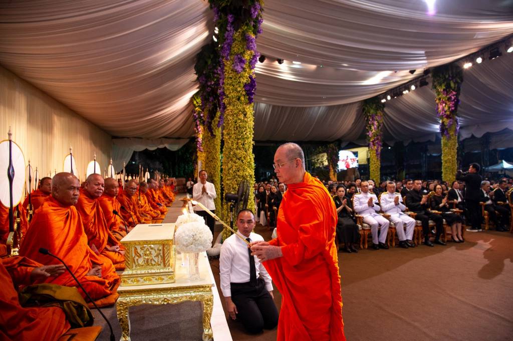 โดยพิธีสวดพระอภิธรรม มี พระพรหมเสนาบดี กรรมการมหาเถรสมาคม เจ้าอาวาสวัดปทุมคงคาราชวรวิหาร จุดธูปบูชาพระรัตนตรัย และนายวงศ์สกุล กิตติพรหมวงศ์ อัยการสูงสุด จุดธูปเทียนบูชาพระธรรม โดยภายในงานมีผู้ดำรงตำแหน่งทางการเมือง และข้าราชการระดับสูงจำนวนมากเข้าร่วม อาทิ นายถาวร เสนเนียม รัฐมนตรีช่วยว่าการกระทรวงคมนาคม, นายสนธยา คุณปลื้ม นายกเมืองพัทยา, ดร.ยงยุทธ ติยะไพรัช อดีตประธานสภาผู้แทนราษฎร และอดีตประธานรัฐสภา, นายสงคราม กิจเลิศไพโรจน์ หัวหน้าพรรคเพื่อชาติ, นายชัยวุฒิ บรรณวัฒน์ อดีตรัฐมนตรีว่าการกระทรวงอุตสาหกรรม, พลเอกเลิศรัตน์ รัตนวานิช สมาชิกวุฒิสภา, พลเอก นพดล อินทปัญญา สมาชิกวุฒิสภา, พลเรือเอกโสภณ วัฒนมงคล ประธานคณะกรรมการการท่าเรือแห่งประเทศไทย, นายวิทยา ยาม่วง อธิบดีกรมเจ้าท่า, นายศิริวัฒน์ ขจรประศาสน์ สมาชิกสภาผู้แทนราษฎรพรรคภูมิใจไทย, นายสัมพันธ์ เลิศนุวัฒน์ อดีตรัฐมนตรีประจำสำนักนายกรัฐมนตรี