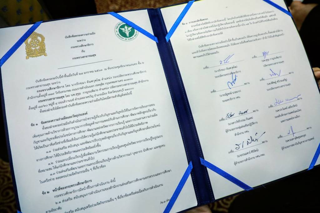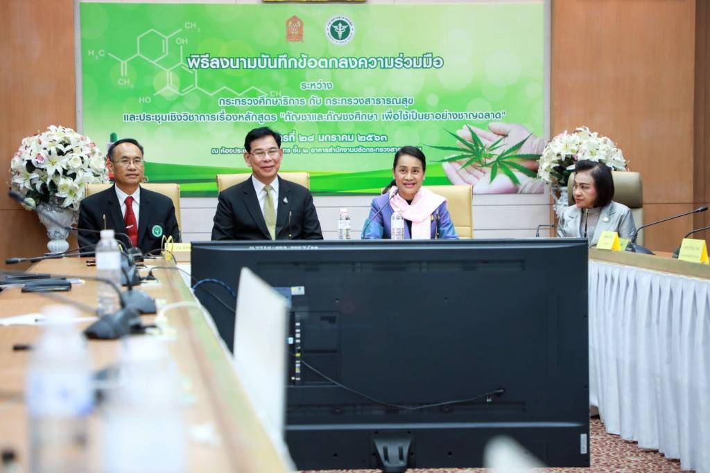 29 มกราคม 2563 เวลา 20:55ศธ.- สธ. ร่วม MOU นำความรู้เกี่ยวกับกัญชากัญชง ไปใช้ประโยชน์ในการจัดการเรียนการสอนอย่างมีคุณภาพเมื่อวันอังคารที่ 28 มกราคม 2563 นางกนกวรรณ วิลาวัลย์ รัฐมนตรีช่วยว่าการกระทรวงศึกษาธิการ เป็นประธานและสักขีพยานในพิธีลงนามบันทึกข้อตกลงความร่วมมือ “การนำความรู้เกี่ยวกับกัญชาและกัญชงไปใช้ในการจัดการเรียนการสอน” ระหว่างกระทรวงศึกษาธิการ โดยนางรักขณา ตัณฑวุฑโฒ รองปลัดกระทรวงศึกษาธิการ และกระทรวงสาธารณสุข โดย นพ.สุขุม กาญจนพิมาย ปลัดกระทรวงสาธารณสุข ณ ห้องชัยนาทนเรนทร สำนักงานปลัดกระทรวงสาธารณสุข แชร์บทความนี้: