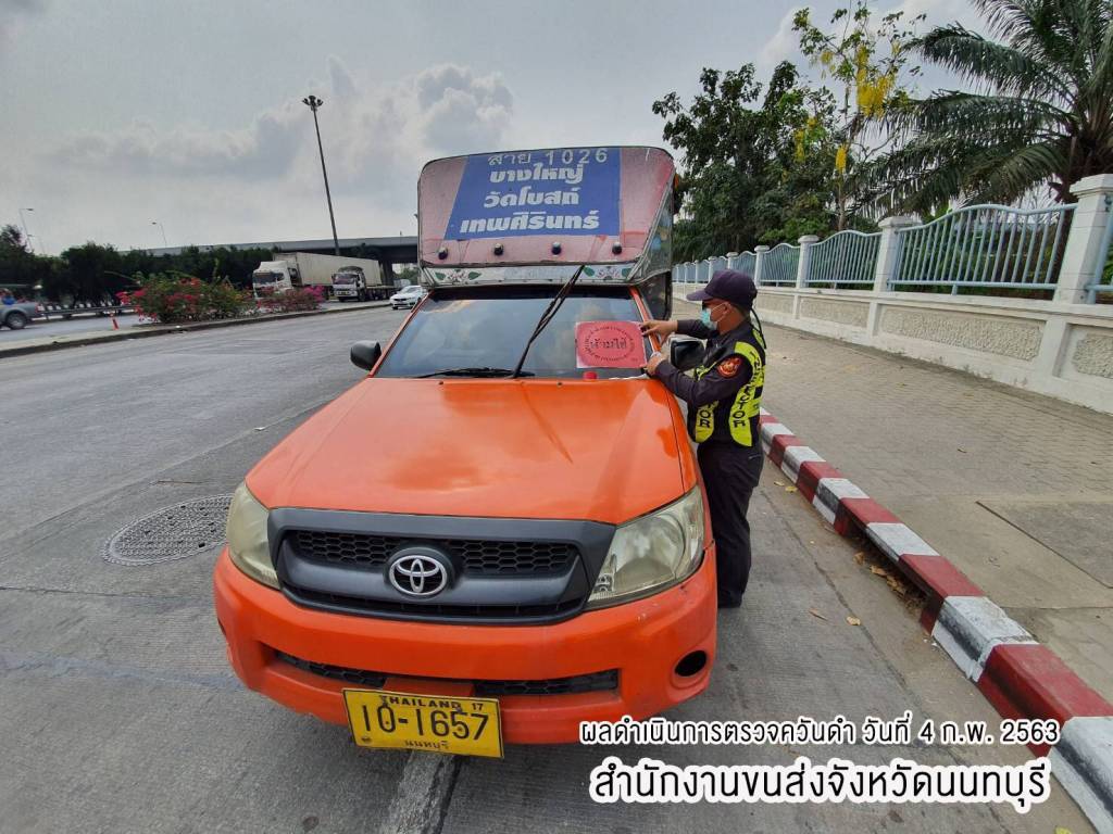 เฉพาะวันที่ 4 กุมภาพันธ์ 2563 ดำเนินการตรวจวัดควันดำรถโดยสารและรถบรรทุกทั่วประเทศ จำนวน 3,239 คัน พบค่าควันดำเกิน จำนวน 45 คัน โดยรถที่มีค่าควันดำเกินกว่าที่กฎหมายกำหนดได้พ่นห้ามใช้ทุกคัน และพบรถที่มีค่าควันดำ 30 - 45 % ได้ออกใบเตือน จำนวน 97 คัน เพื่อให้ผู้ประกอบการไปบำรุงดูแลรักษารถไม่ให้มีค่าควันดำเกิน แบ่งเป็น ดังนี้