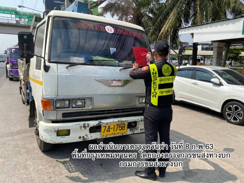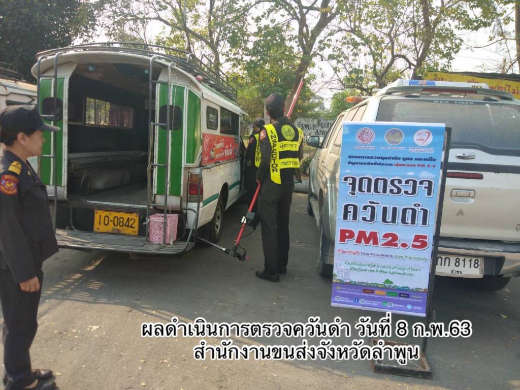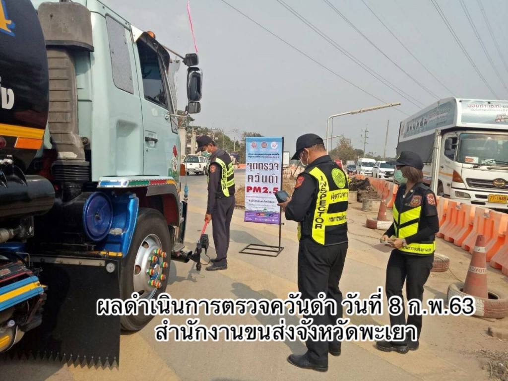 เฉพาะวันที่ 8 กุมภาพันธ์ 2563 ดำเนินการตรวจวัดควันดำรถโดยสารและรถบรรทุกทั่วประเทศ จำนวน 3,230 คัน พบค่าควันดำเกิน จำนวน 44 คัน โดยรถที่มีค่าควันดำเกินกว่าที่กฎหมายกำหนดได้พ่นห้ามใช้ทุกคัน และพบรถที่มีค่าควันดำ 30 - 45 % ได้ออกใบเตือน จำนวน 103 คัน เพื่อให้ผู้ประกอบการไปบำรุงดูแลรักษารถไม่ให้มีค่าควันดำเกิน แบ่งเป็น ดังนี้