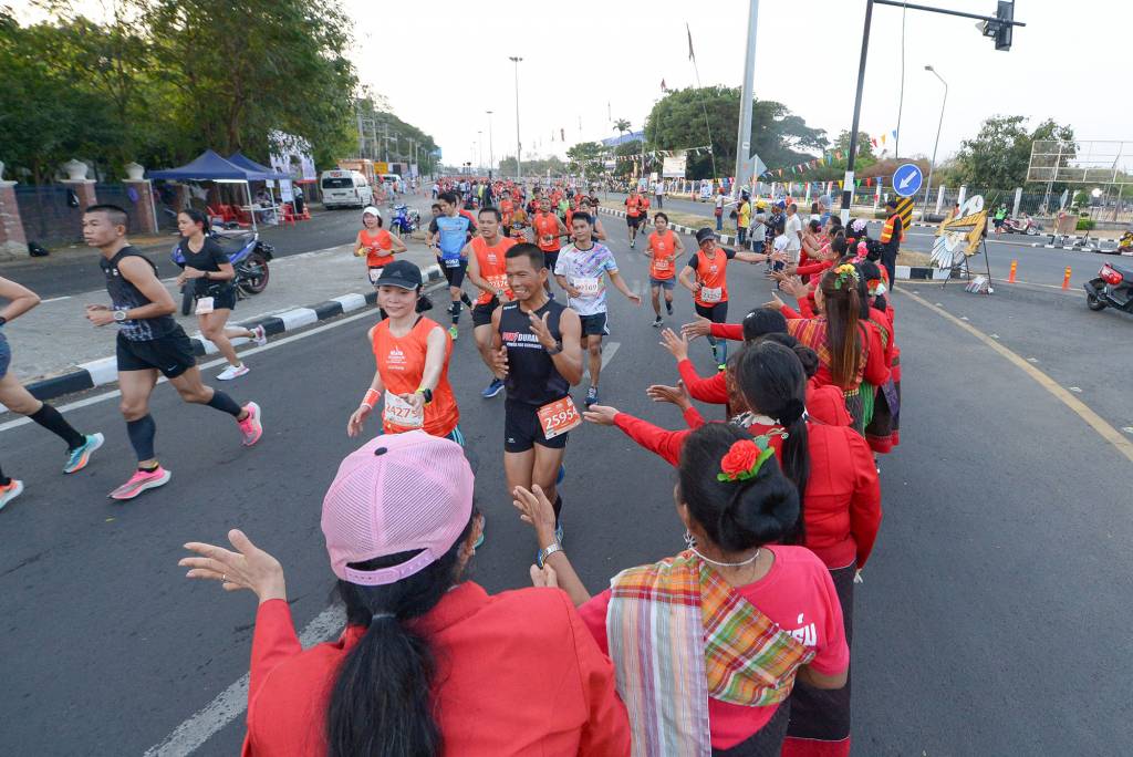 ระยะฮาล์ฟมาราธอน 21.1 กิโลเมตร ฝ่ายชาย ที่ 1 แมทธิว แซมเปรู 1.03.46 ชม. ได้แชมป์รุ่น 18-29 ปี ที่ 2 เคนเนธ กิเบธ โรโน 1.05.35 น.ที่ 3 อีซาคีล เยโก 1.07.44 ชม. ส่วน “บิ๊ก” ณัฐวุฒิ อินนุ่ม คู่แฝดทีมชาติชุดซีเกมส์ และ ได้แชมป์คนไทยคนแรกด้วยเวลา 1.07.58 ชม.