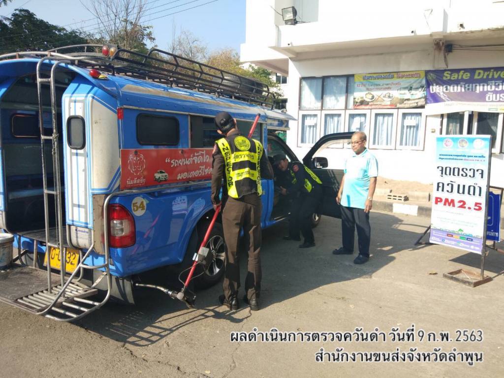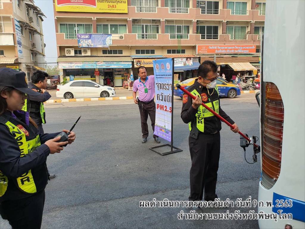 กรมการขนส่งทางบก ขานรับนโยบายจากรัฐบาลในการป้องกันและแก้ไขปัญหาฝุ่นละอองขนาดเล็ก PM2.5 และสอดคล้องตามนโยบายของนายศักดิ์สยาม ชิดชอบ รัฐมนตรีว่าการกระทรวงคมนาคม จัดผู้ตรวจการลงพื้นที่ตรวจวัดค่าควันดำรถโดยสารและรถบรรทุก ตามมาตรการป้องกันค่าฝุ่นละอองขนาดเล็ก PM2.5 สูงเกินมาตรฐานทั่วประเทศ