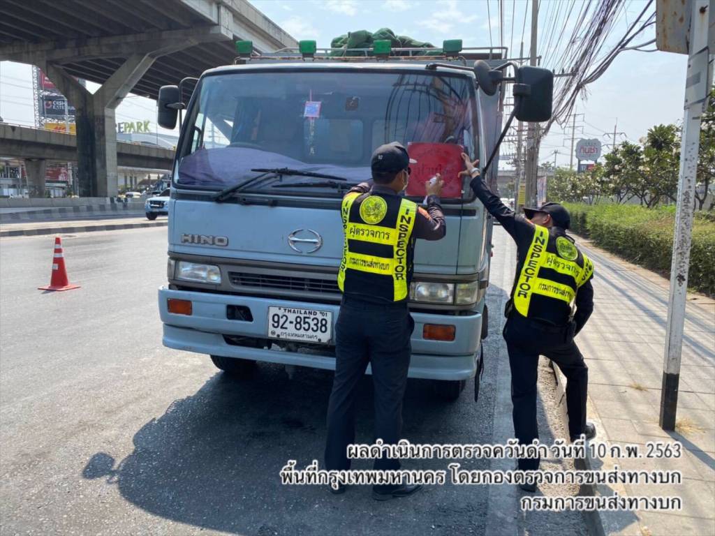 เฉพาะวันที่ 10 กุมภาพันธ์ 2563 ดำเนินการตรวจวัดควันดำรถโดยสารและรถบรรทุกทั่วประเทศ จำนวน 3,084 คัน พบค่าควันดำเกิน จำนวน 19 คัน โดยรถที่มีค่าควันดำเกินกว่าที่กฎหมายกำหนดได้พ่นห้ามใช้ทุกคัน และพบรถที่มีค่าควันดำ 30 - 45 % ได้ออกใบเตือน จำนวน 102 คัน เพื่อให้ผู้ประกอบการไปบำรุงดูแลรักษารถไม่ให้มีค่าควันดำเกิน แบ่งเป็น ดังนี้