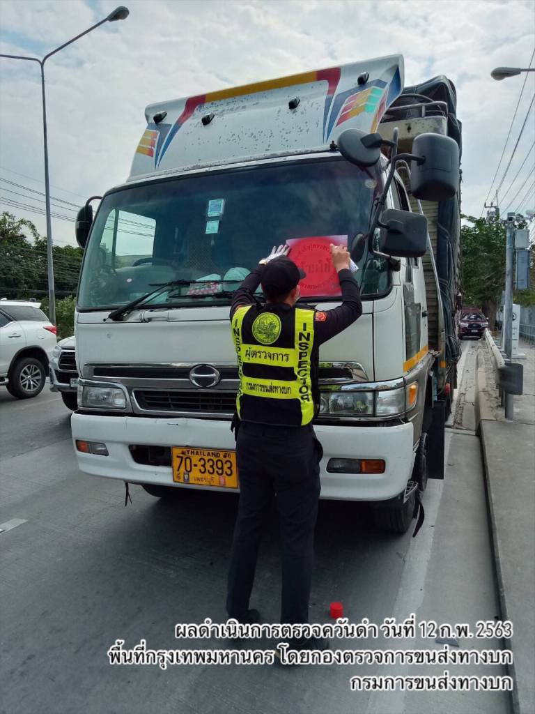 เฉพาะวันที่ 12 กุมภาพันธ์ 2563 ดำเนินการตรวจวัดควันดำรถโดยสารและรถบรรทุกทั่วประเทศ จำนวน 3,463 คัน พบค่าควันดำเกิน จำนวน 50 คัน โดยรถที่มีค่าควันดำเกินกว่าที่กฎหมายกำหนดได้พ่นห้ามใช้ทุกคัน และพบรถที่มีค่าควันดำ 30-45 % ได้ออกใบเตือน จำนวน 125 คัน เพื่อให้ผู้ประกอบการไปบำรุงดูแลรักษารถไม่ให้มีค่าควันดำเกิน แบ่งเป็น ดังนี้