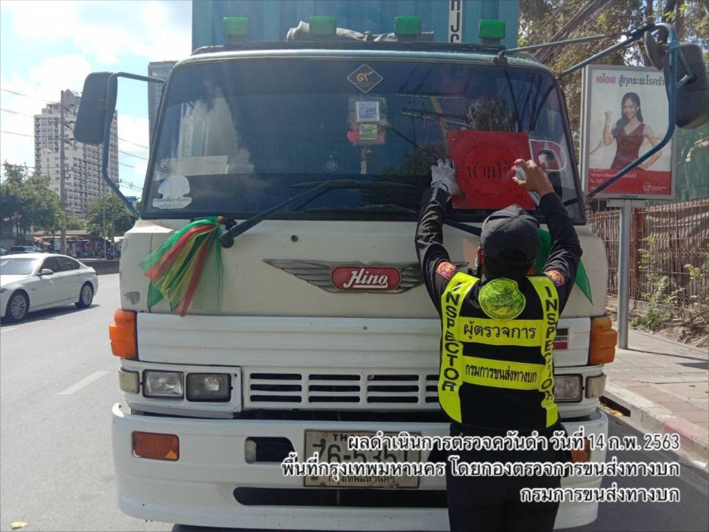 เฉพาะวันที่ 14 กุมภาพันธ์ 2563 ดำเนินการตรวจวัดควันดำรถโดยสารและรถบรรทุกทั่วประเทศ จำนวน 2,964 คัน พบค่าควันดำเกิน จำนวน 76 คัน โดยรถที่มีค่าควันดำเกินกว่าที่กฎหมายกำหนดได้พ่นห้ามใช้ทุกคัน และพบรถที่มีค่าควันดำ 30 - 45 % ได้ออกใบเตือน จำนวน 114 คัน เพื่อให้ผู้ประกอบการไปบำรุงดูแลรักษารถไม่ให้มีค่าควันดำเกิน แบ่งเป็น ดังนี้