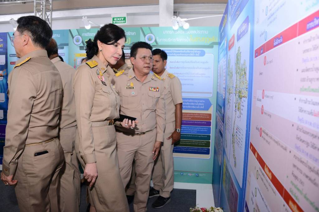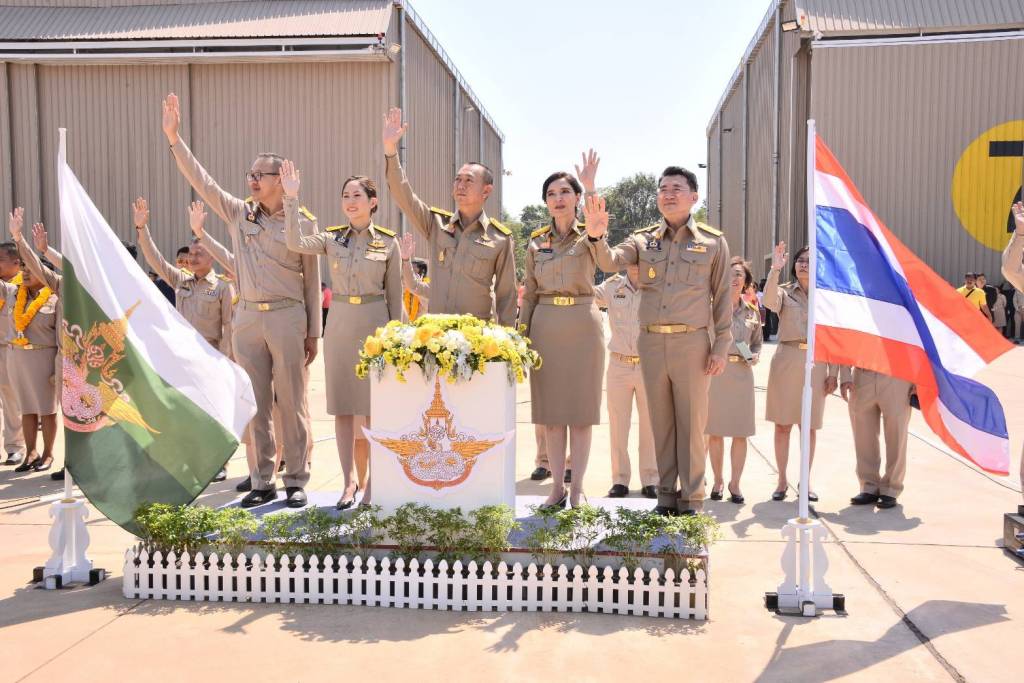 ในการนี้ ได้เยี่ยมชมนิทรรศการฝนหลวงและหน่วยงานที่เกี่ยวข้อง พร้อมทั้งตรวจแถวชุดปฏิบัติการฝนหลวง 8 ชุด และคล้องพวงมาลัยให้กับผู้อำนวยการศูนย์ปฏิบัติการฝนหลวงทั้ง 7 ภูมิภาค เพื่อเป็นขวัญและกำลังใจให้กับผู้ปฏิบัติงาน ประกอบด้วย ชุดปฏิบัติการของกรมฝนหลวงและการบินเกษตร 7 ชุด และชุดปฏิบัติการฝนหลวงกองทัพอากาศ 1 ชุด จากนั้นได้ปล่อยขบวนคาราวานเครื่องบินฝนหลวงออกปฏิบัติการ