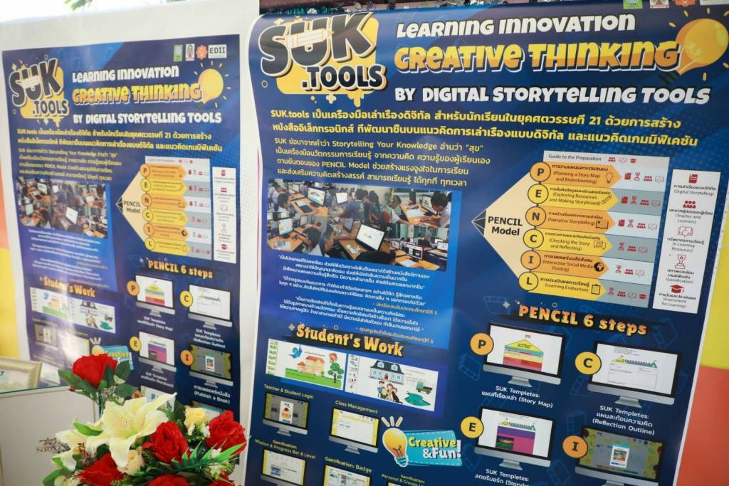 ดร.พิมพ์ประภา พาลพ่าย ครูเจ้าของนวัตกรรม SUK.Tools กล่าวว่า SUK.Tools เป็นนวัตกรรมการเรียนรู้ที่คิดค้นร่วมกับคณะ อีก 2 คน เพื่อส่งเสริมความคิดสร้างสรรค์ ด้วยเครื่องมือเล่าเรื่องดิจิทัล สำหรับนักเรียนในศตวรรษที่ 21 โดยใช้แนวคิดการเล่าเรื่องแบบดิจิทัล และแนวคิดเกมมิฟิเคชัน ในการสร้างหนังสืออิเล็กทรอนิกส์ตามขั้นตอนของ Pencil Model ประกอบด้วย P: การวางแผนระดมสมอง E: การสืบค้นข้อมูลและสร้างสตอรี่บอร์ด N: การสร้างเรื่องเล่าจากการเล่าเรื่อง C: การตรวจทานและสะท้อนความคิดร่วมกัน I: การเผยแพร่บนสื่อสังคมออนไลน์ และ L: ประเมินผลการเรียนรู้