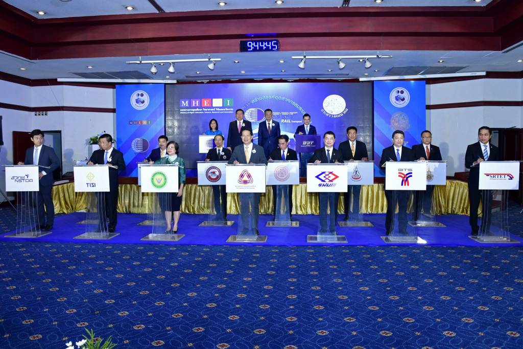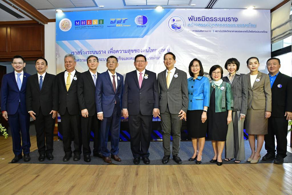 กระทรวงคมนาคม โดยกรมการขนส่งทางราง และ กระทรวงการอุดมศึกษาวิทยาศาสตร์ วิจัยและนวัตกรรม โดยสถาบันวิจัยวิทยาศาสตร์และเทคโนโลยีแห่งประเทศไทย พร้อมด้วยพันธมิตรรวมทั้งหมด 15 หน่วยงาน ได้ร่วมลงนามข้อตกลงฯ เพื่อร่วมมือพัฒนาอุตสาหกรรมระบบราง ทดสอบและทดลอง พัฒนาทรัพยากรบุคคล พร้อมเสริมประสิทธิภาพระบบขนส่งทางรางและความปลอดภัยในการเดินรถไฟ ยกระดับมาตรฐานอุตสาหกรรมชิ้นส่วนและผลิตภัณฑ์ระบบรางให้เป็นไปตามมาตรฐานของประเทศและสากล ช่วยเพิ่มขีดความสามารถด้านการทดสอบวิเคราะห์ด้านระบบราง สนับสนุนการผลิตชิ้นส่วนในประเทศ (Local Content) ทดแทนการนำเข้าสนับสนุนการผลิตบุคลากรและผู้เชี่ยวชาญวิจัยด้านระบบราง ตลอดจนวิจัยพัฒนาแก้โจทย์ปัญหาด้านระบบรางของประเทศสู่การสร้างความยั่งยืนในการขนส่งระบบราง ภายใต้กรอบความร่วมมือ 5 ด้าน ได้แก่ 1) การถ่ายทอดเทคโนโลยี การวิจัยและพัฒนา 2) การพัฒนามาตรฐานระบบราง 3) การพัฒนาอุตสาหกรรมระบบราง 4) การทดสอบและการทดลอง และ 5) การพัฒนาทรัพยากรบุคคล