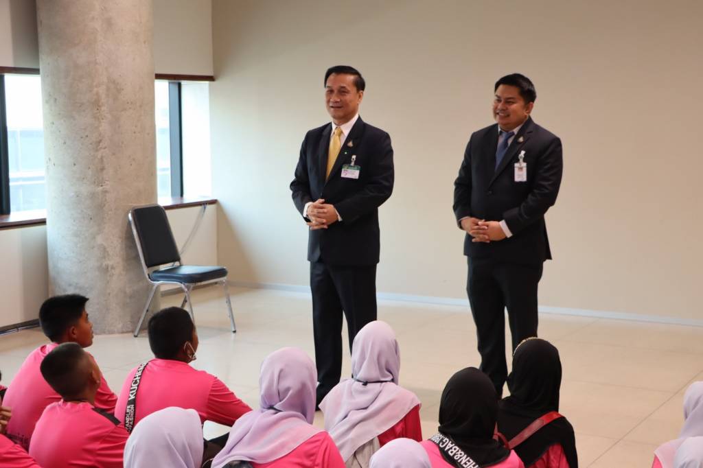 ทั้งนี้ ดร.ทรงศักดิ์ ทองศรี รมช.มท. ได้พูดคุยกับคณะครู และนักเรียน อย่างเป็นกันเอง โดยกล่าวว่าตนเองดำรงตำแหน่ง รมช.มท. ซึ่งกระทรวงมหาดไทยมีภารกิจหน้าที่เกี่ยวข้องกับพี่น้องประชาชนตั้งแต่เกิดจนตาย แก้ไขปัญหาความเดือดร้อนของประชาชนในทุกพื้นที่ ซึ่งประสานการปฏิบัติจากพื้นที่ร่วมกับ ส.ส. แล้วนำเรื่องปัญหาความต้องการเข้ามาสู่ระบบรัฐสภา การศึกษาดูงานในครั้งนี้ จึงขอให้นักเรียนได้รับทราบถึงกลไกของรัฐสภาที่เกี่ยวข้องกับการบริหารราชการแผ่นดินโดยรวมและนำไปเผยแพร่แก่เพื่อนนักเรียนและครอบครัวในพื้นที่ต่อไป
