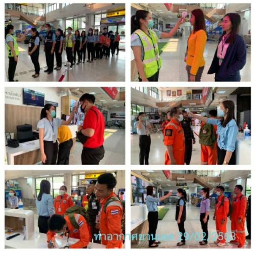 ผู้มาใช้บริการในจุดต่างๆ เช่น ห้องผู้โดยสารขาเข้าระหว่างประเทศ ห้องผู้โดยสารขาเข้าภายในประเทศ ห้องผู้โดยสารขาออกทั้งภายในประเทศและระหว่างประเทศ รวมไปถึงการทำความสะอาดรถบริการรับ-ส่ง ผู้โดยสาร และมีการเผยแพร่ในสื่อประชาสัมพันธ์และวิธีป้องกัน เพื่อเป็นการเฝ้าระวังและป้องกันการติดเชื้อของไวรัสโคโรน่า 19 (COVID-19) ที่กำลังแพร่ระบาดในปัจจุบันอย่างต่อเนื่อง