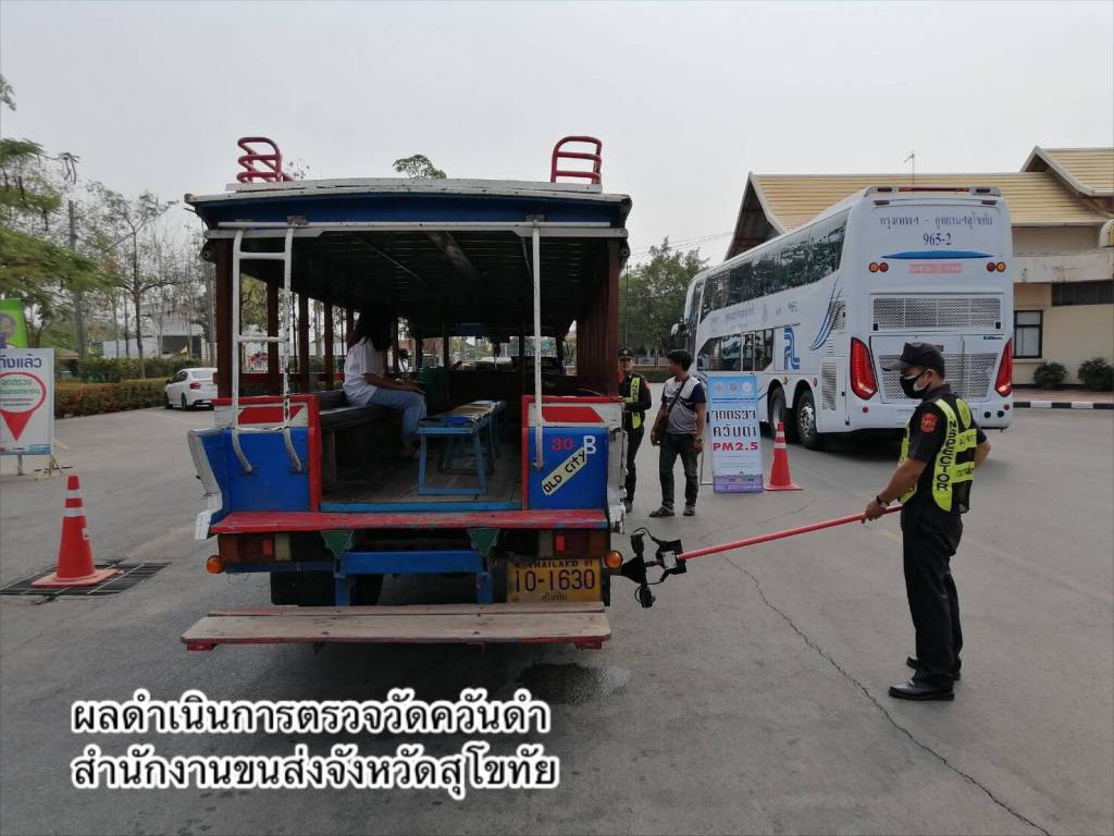 เฉพาะวันที่ 1 มีนาคม 2563 ดำเนินการตรวจวัดควันดำรถโดยสารและรถบรรทุกทั่วประเทศ จำนวน 1,836 คัน พบค่าควันดำเกิน จำนวน 21 คัน โดยรถที่มีค่าควันดำเกินกว่าที่กฎหมายกำหนดได้พ่นห้ามใช้ทุกคัน และพบรถที่มีค่าควันดำ 30 - 45 % ได้ออกใบเตือน จำนวน 56 คัน เพื่อให้ผู้ประกอบการไปบำรุงดูแลรักษารถไม่ให้มีค่าควันดำเกิน แบ่งเป็น ดังนี้
