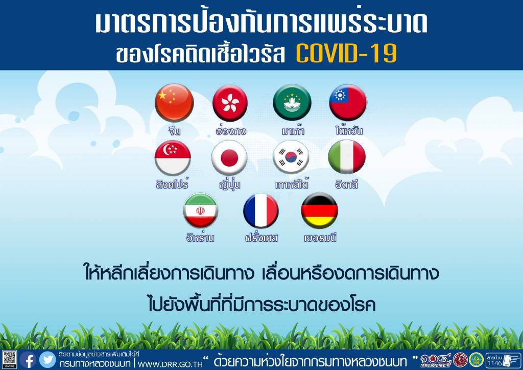 ในส่วนของกรมทางหลวงชนบท (ทช.) ได้ตระหนักถึงความปลอดภัยของบุคลากรและประชาชนที่มาติดต่อประสานงานกับทางกรม ซึ่งในเบื้องต้นกรมได้ฉีดพ่นน้ำยาฆ่าเชื้อโรค ใช้เครื่องพ่นยาความดันสูง บริเวณภายในกรมและอาคารสำนักงานทั้งหมด เพื่อป้องกันการแพร่ระบาดของเชื้อไวรัสโควิด 19 พร้อมขอความร่วมมือผู้เข้ามาใช้บริการและบุคลากรสวมใส่หน้ากากอนามัย